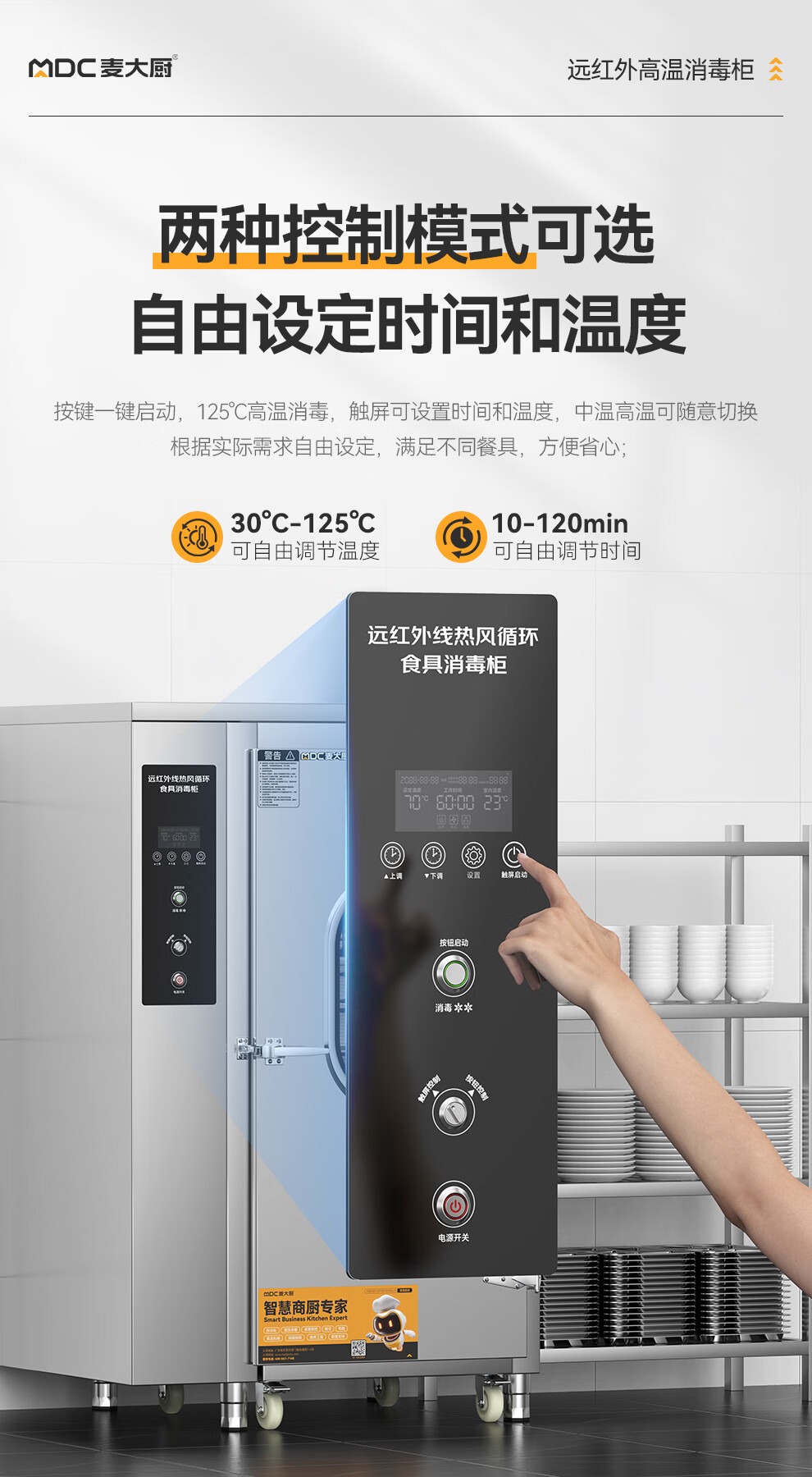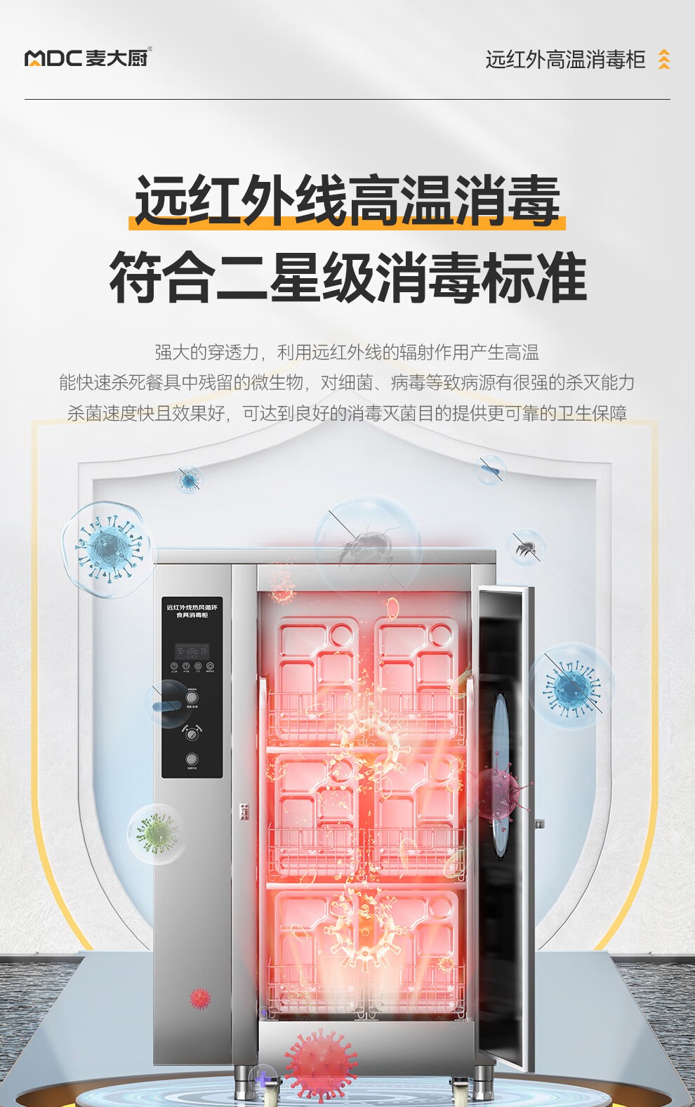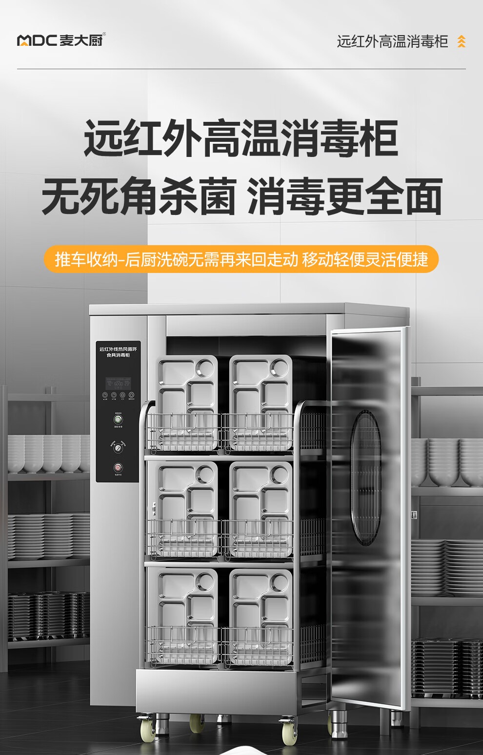 麥大廚380V工程款單門單控3層推車式遠(yuǎn)紅外線熱風(fēng)循環(huán)高溫消毒柜4.5KW