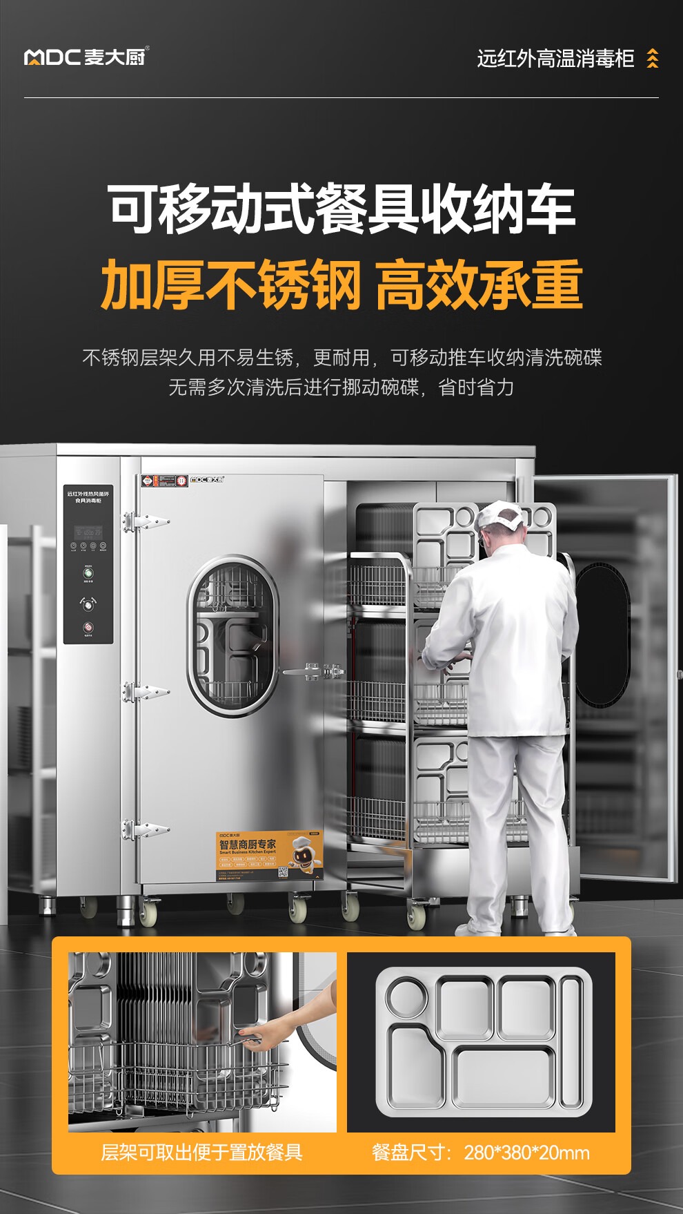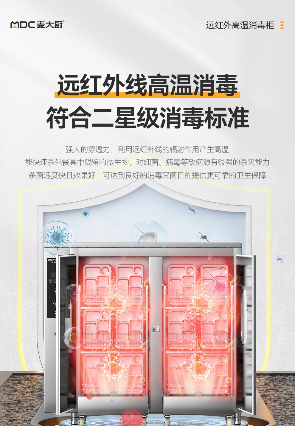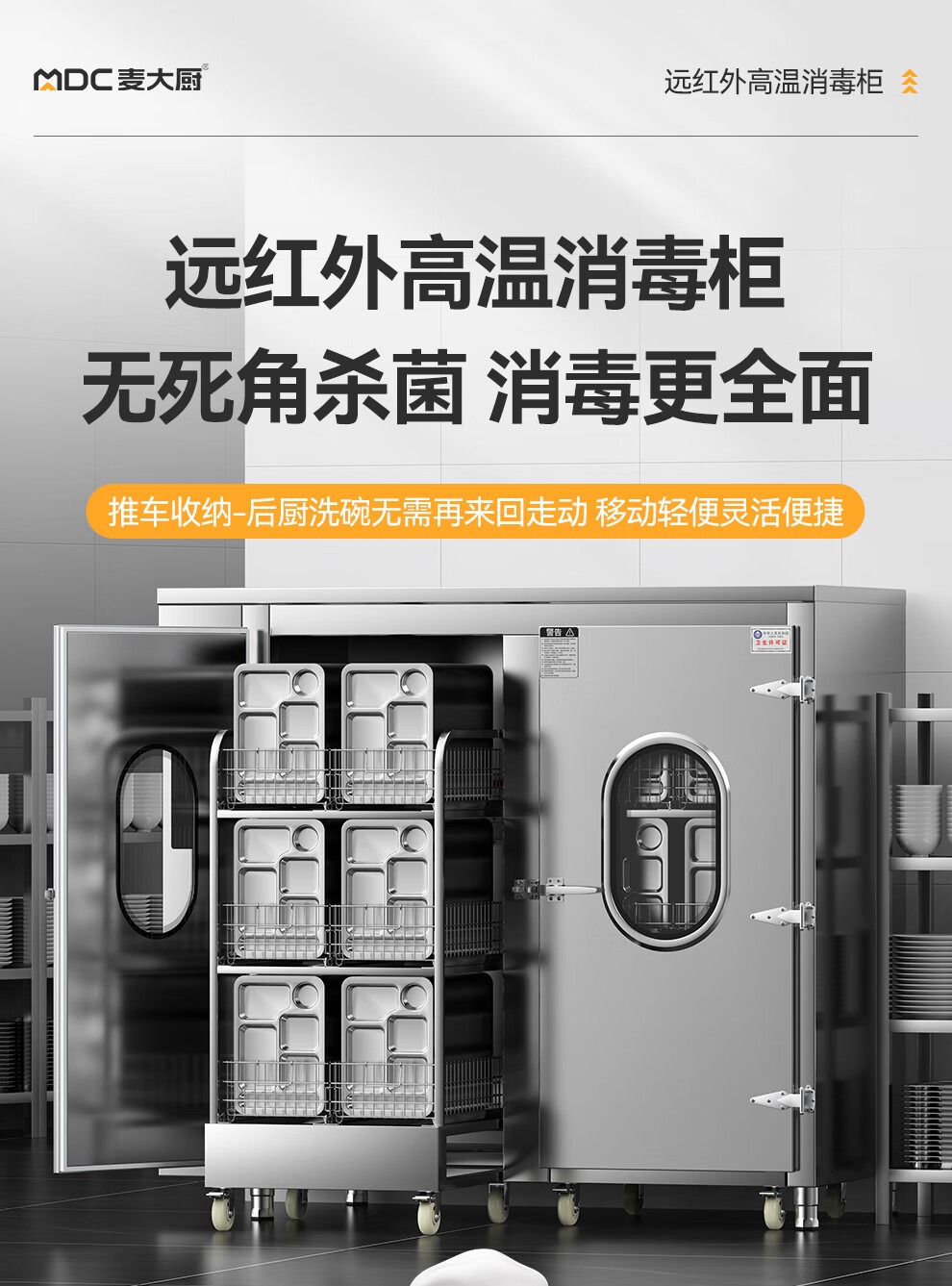 麥大廚380V工程款雙門單控3層推車式遠紅外線熱風循環(huán)高溫消毒柜7KW