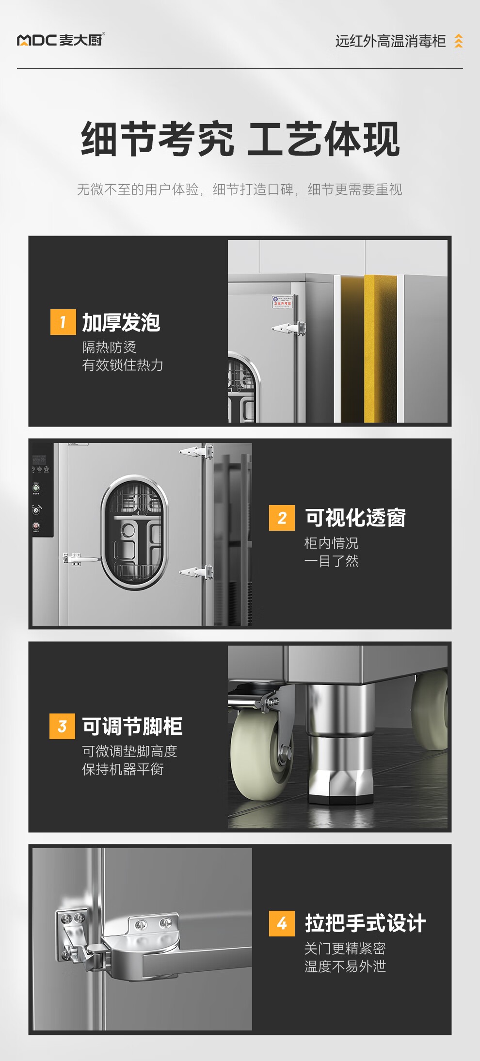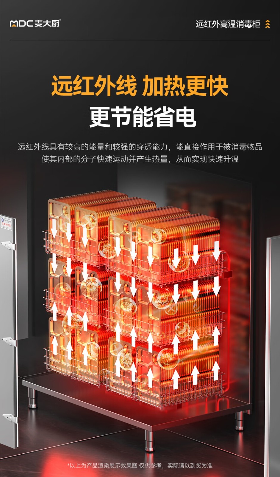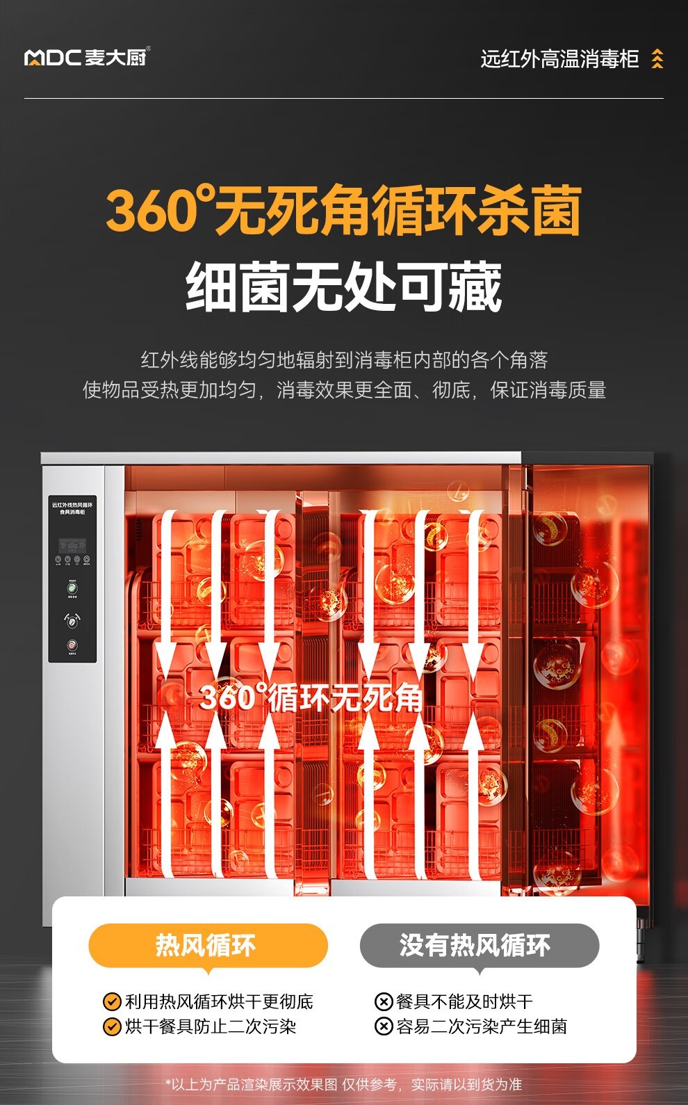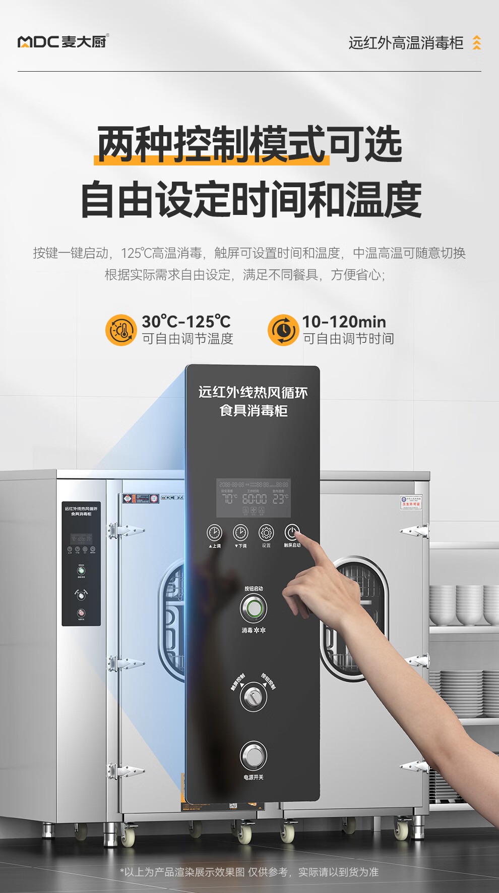 麥大廚380V工程款雙門單控3層推車式遠紅外線熱風循環(huán)高溫消毒柜7KW