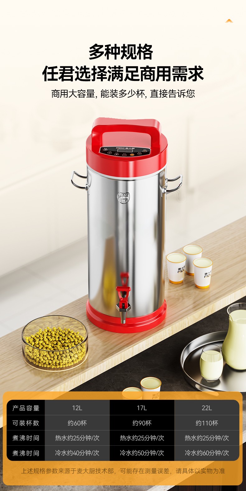 麥大廚商用經(jīng)濟款豆?jié){機分體加熱磨漿機17L