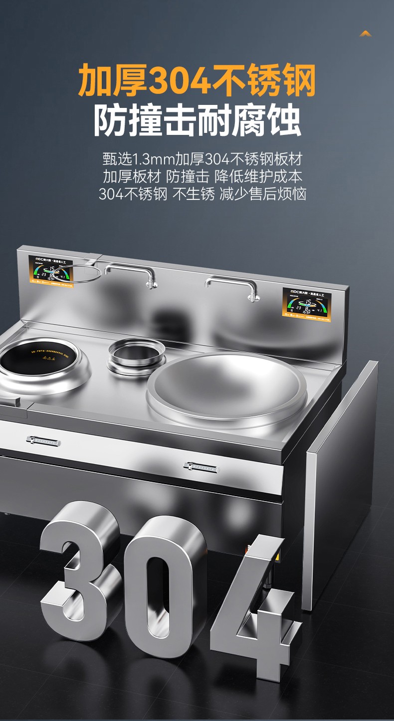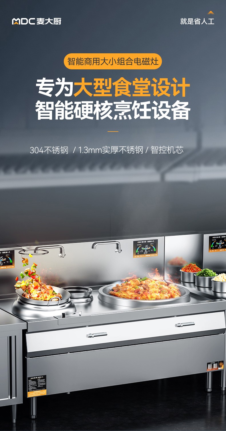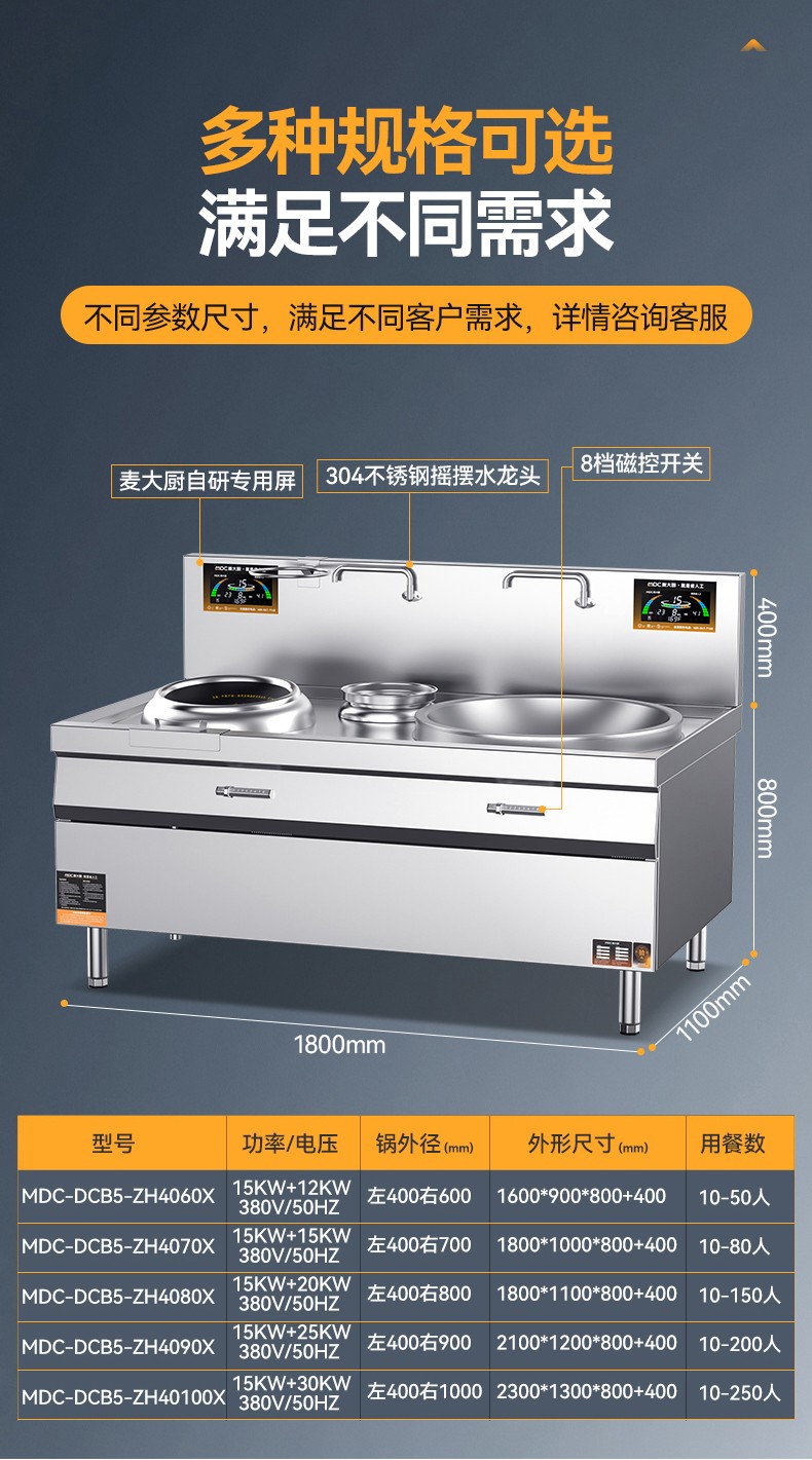 首頁 > 商廚產(chǎn)品 > 電磁灶 > 大小組合爐 >麥大廚星麥款左400右800大小組合爐商用