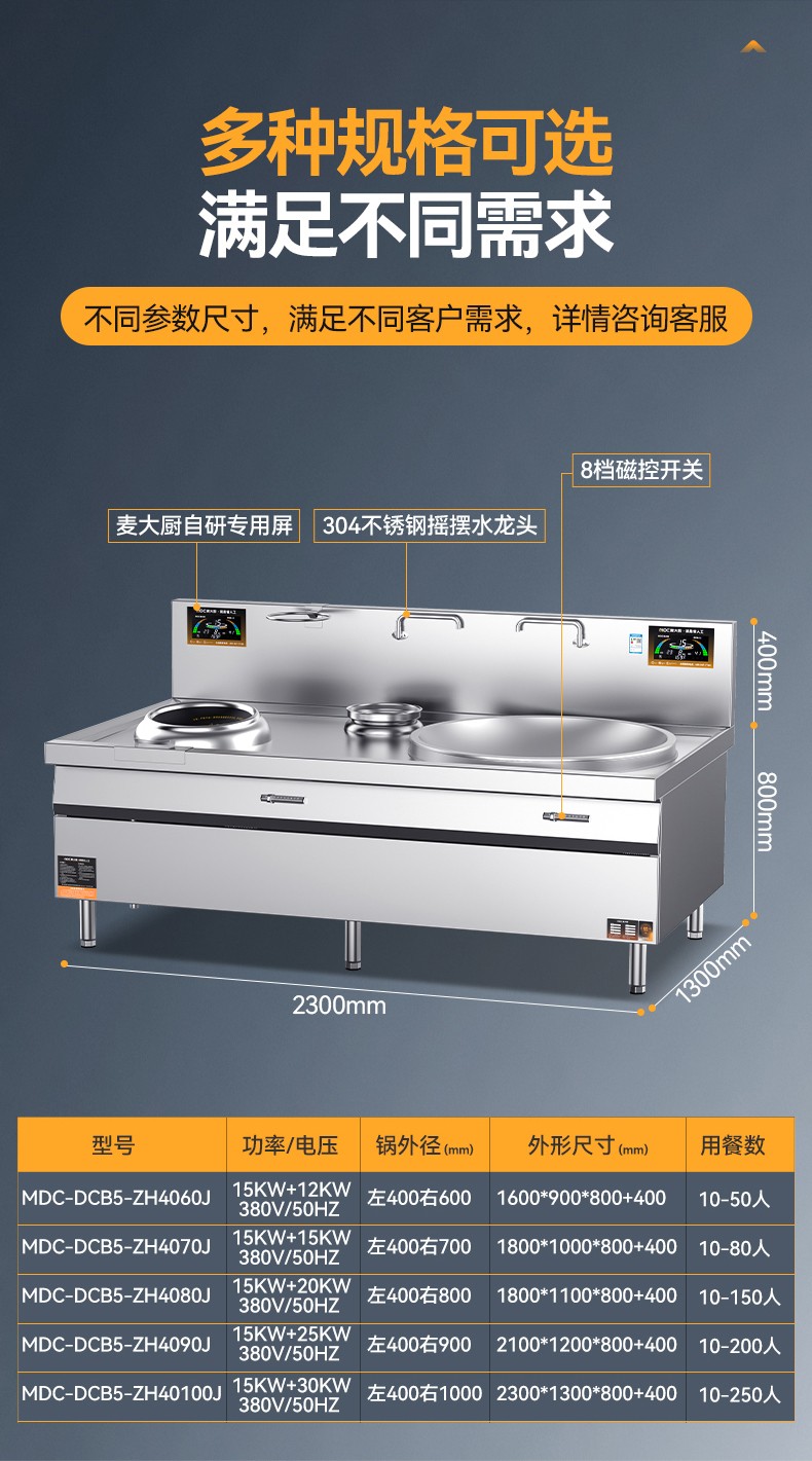首頁 > 商廚產(chǎn)品 > 電磁灶 > 大小組合爐 > 麥大廚左400右1000金麥款大小組合爐商用