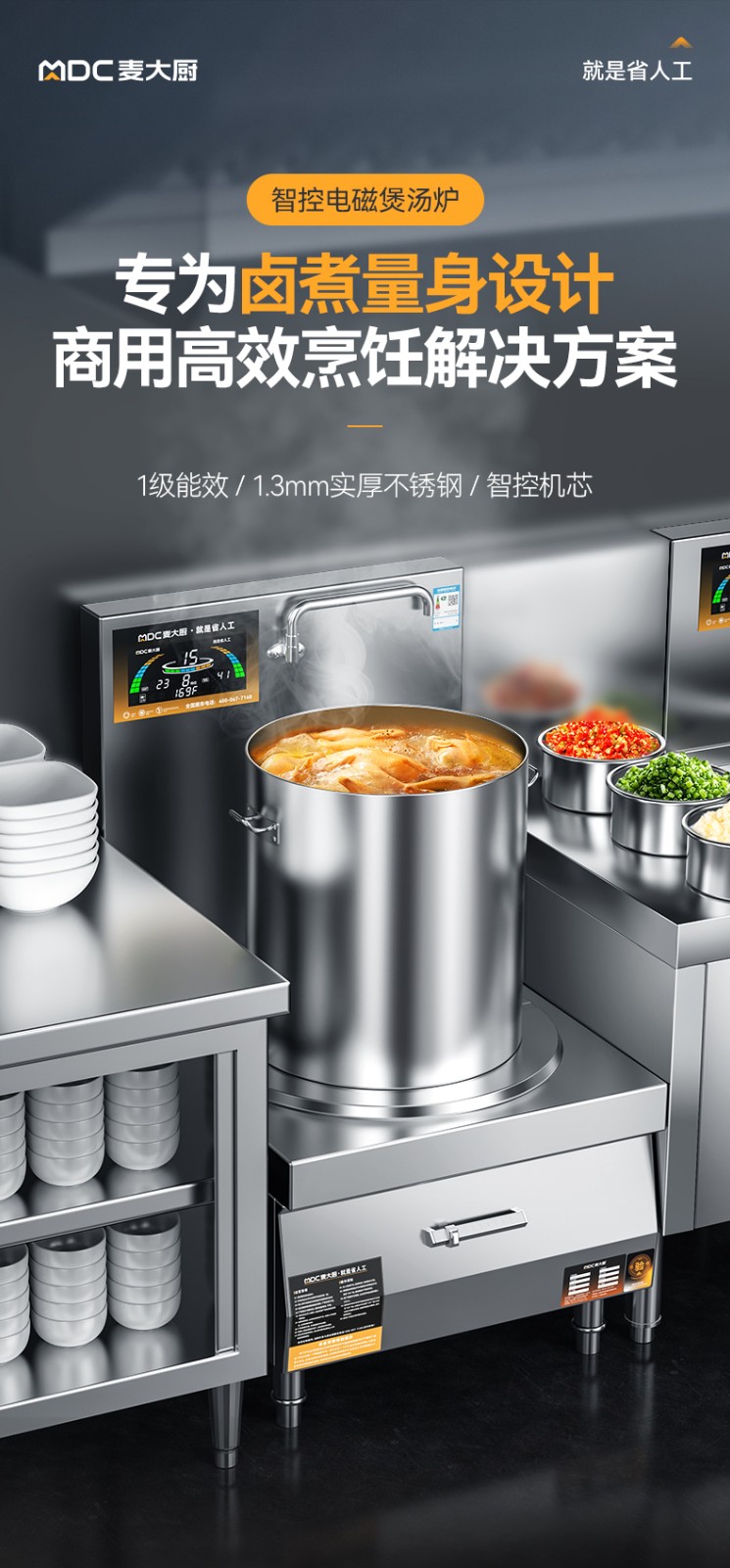 首頁(yè) > 商廚產(chǎn)品 > 電磁灶 > 單頭低湯爐 >麥大廚大功率學(xué)校單位食堂廚房設(shè)備商用單頭低湯爐8KW