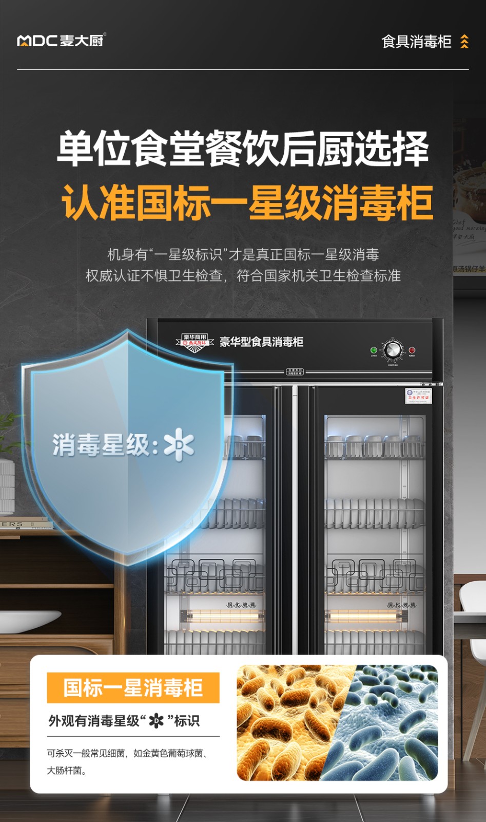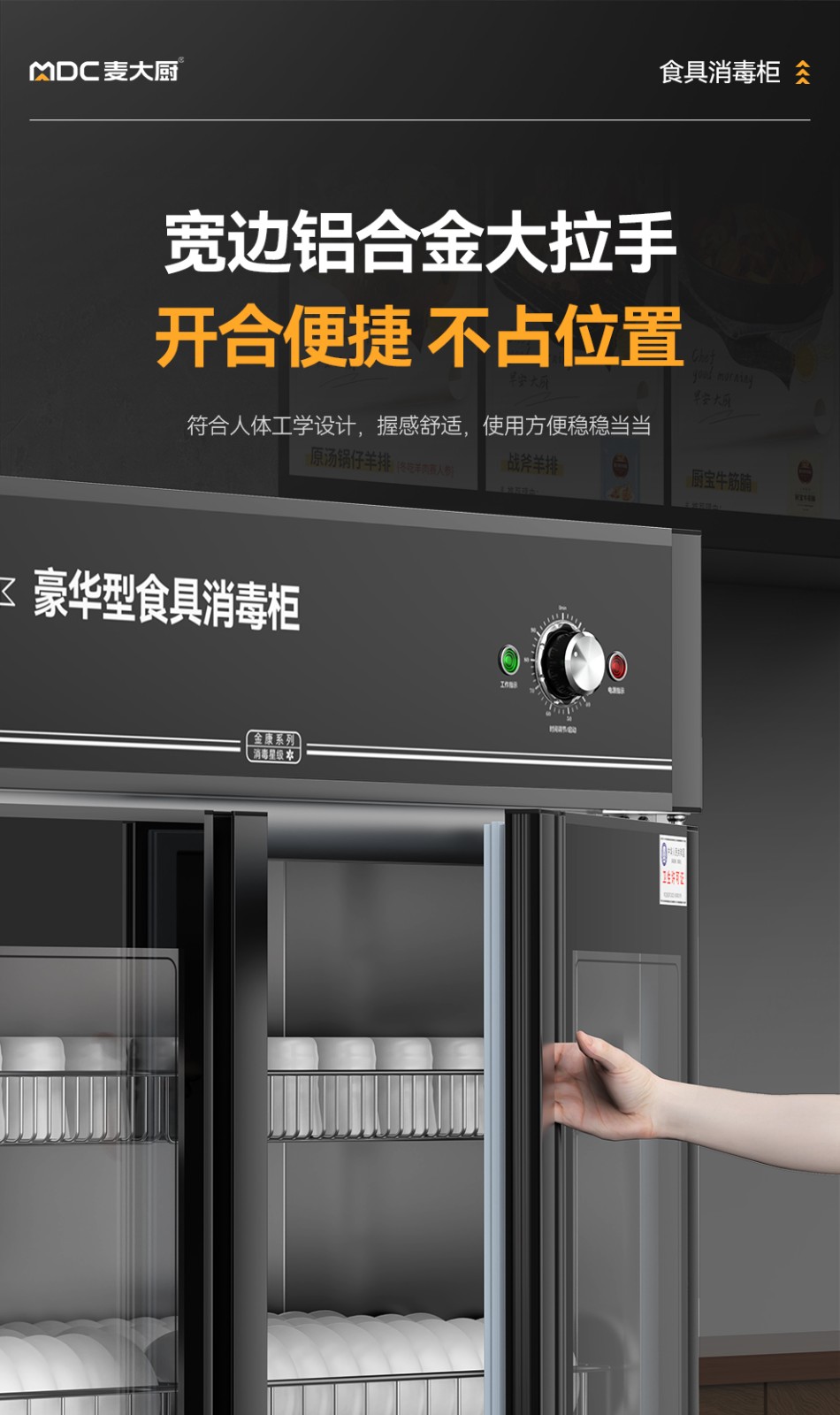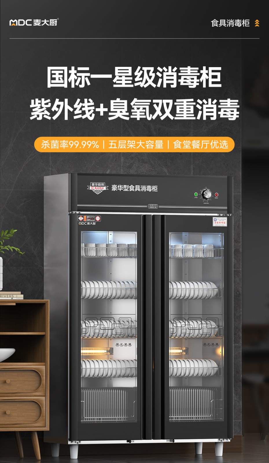 首頁 > 商廚產(chǎn)品 > 消毒柜 > 中溫消毒柜 >麥大廚豪華旋鈕型5層雙門中溫光波食具消毒柜(臭氧+紫外線+熱風(fēng)循環(huán))1250W