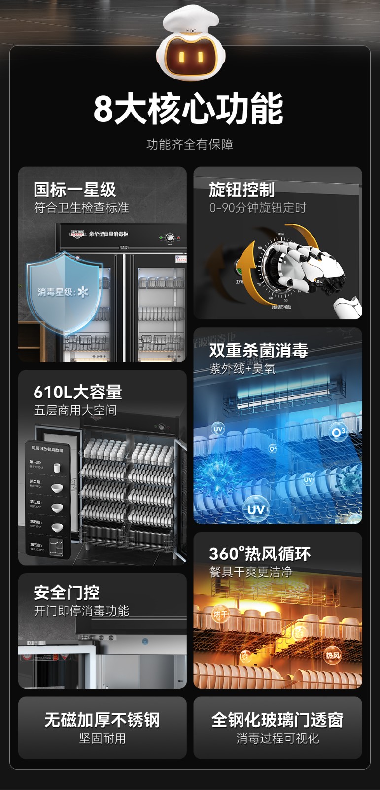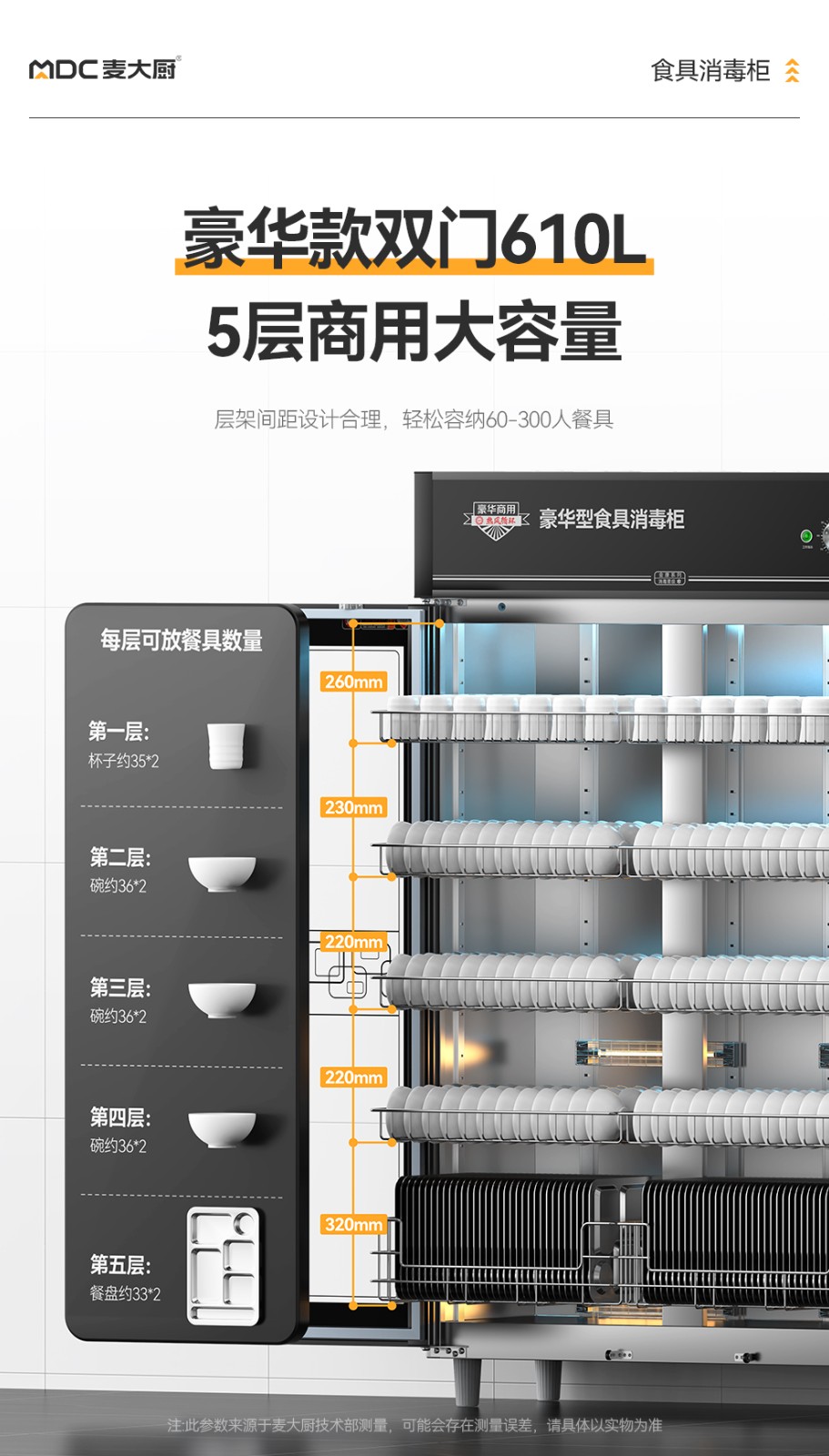 麥大廚豪華旋鈕型5層雙門中溫光波食具消毒柜(臭氧+紫外線+熱風(fēng)循環(huán))1250W