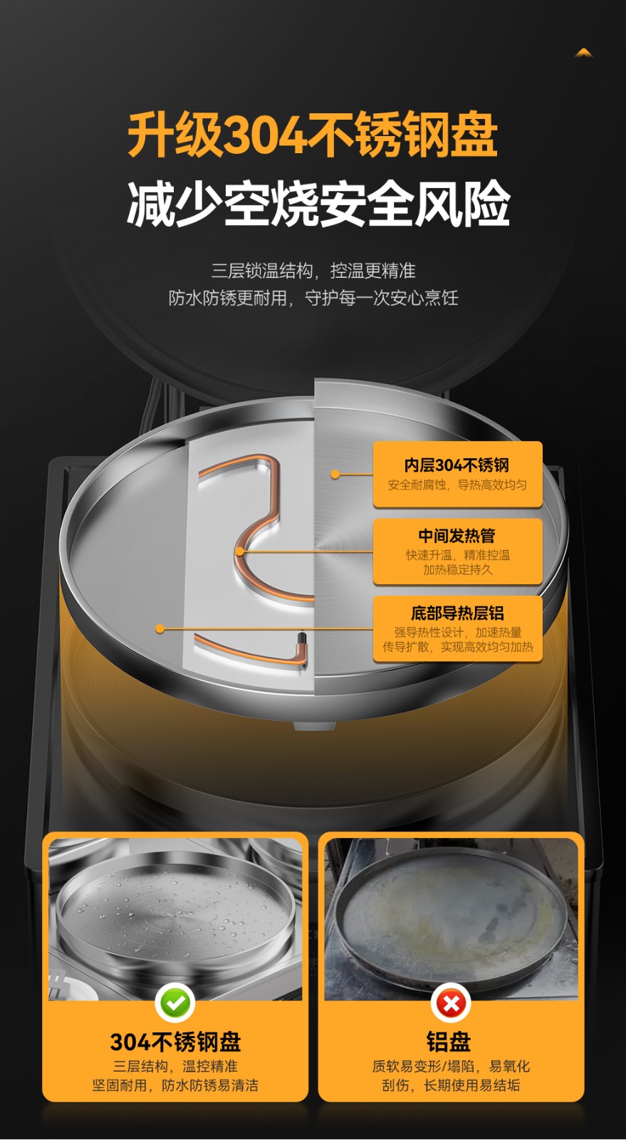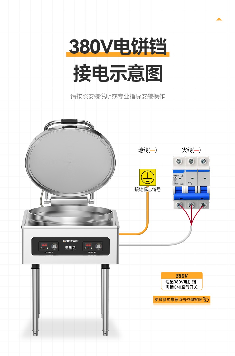 麥大廚380V數顯標準款商用電餅鐺食堂烙餅機(不銹鋼3cm)