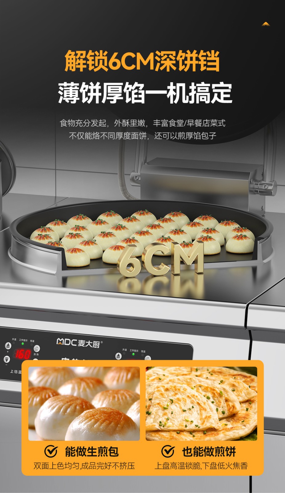 麥大廚220V大型食堂烙餅機(jī)鐵鍋6cm數(shù)顯升級(jí)款商用電餅鐺
