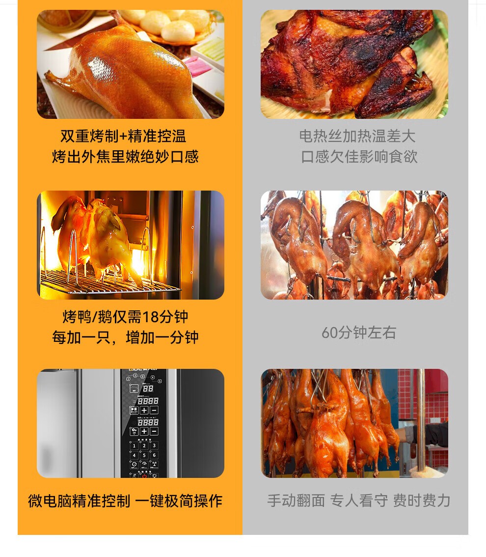 烤制容量:3斤鴨6只,5斤鴨2-3只,7斤鵝2只