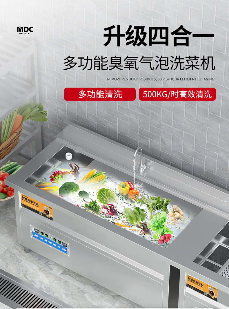 麥大廚商用洗菜機(jī)1.5米四合一多功能(氣泡、沖浪、臭氧、加熱)洗菜機(jī)