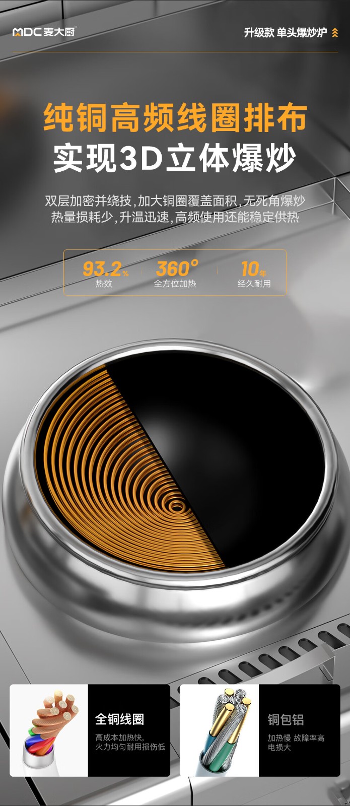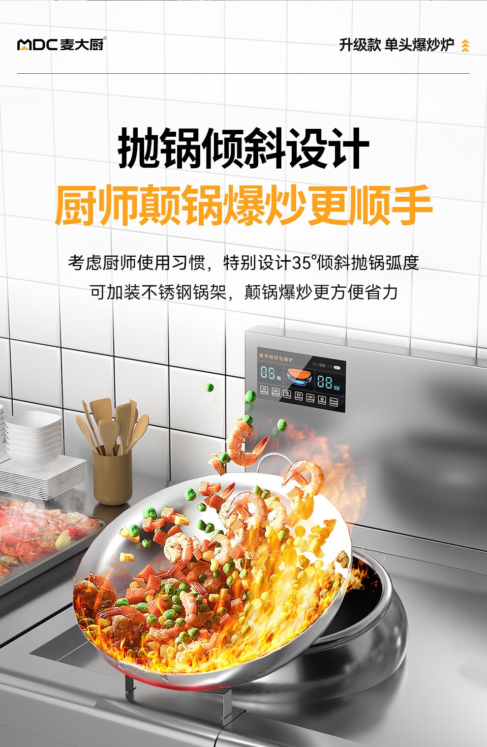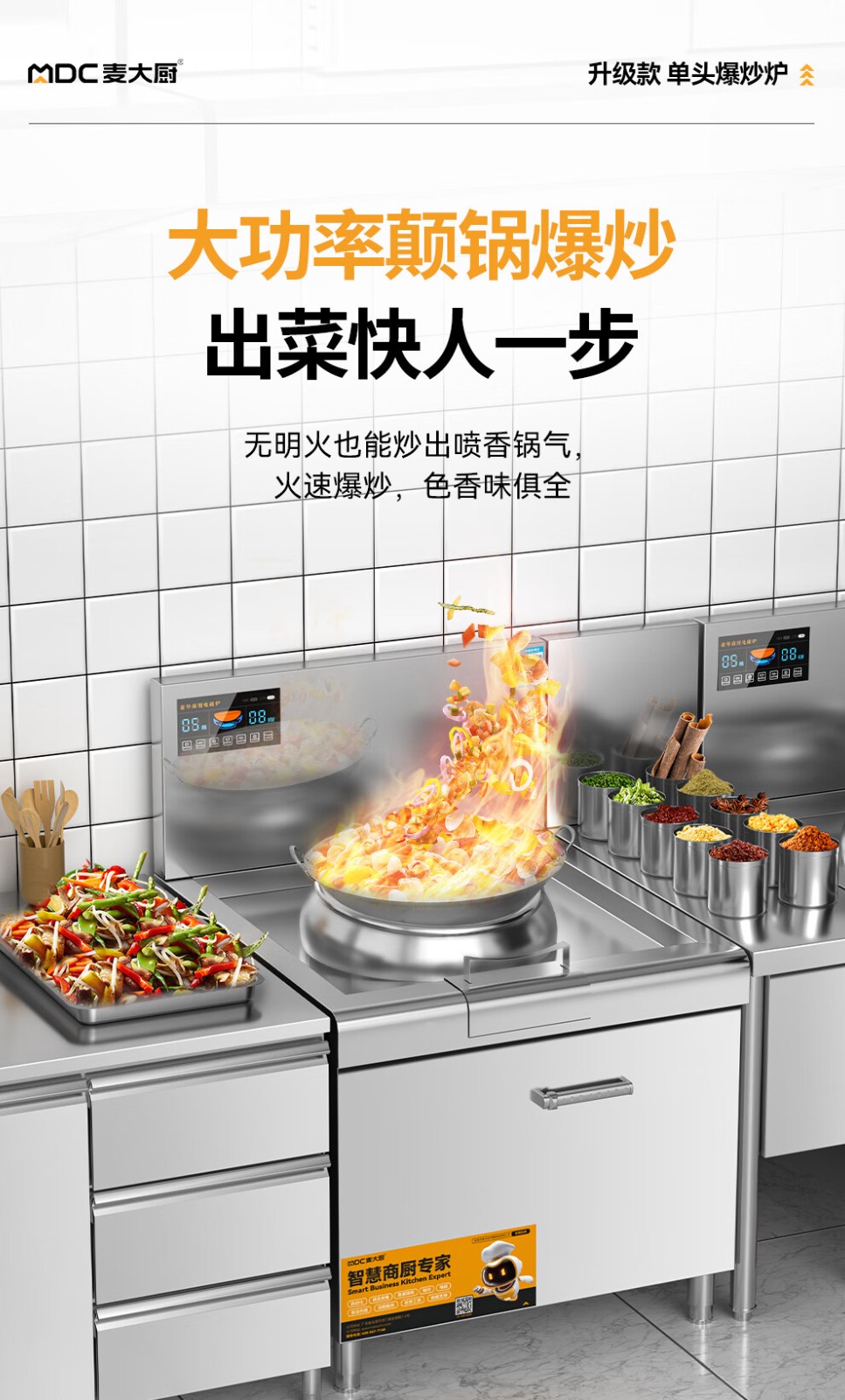 麥大廚食堂大火力電磁灶升級(jí)款單頭無(wú)尾小炒爐商用8kw
