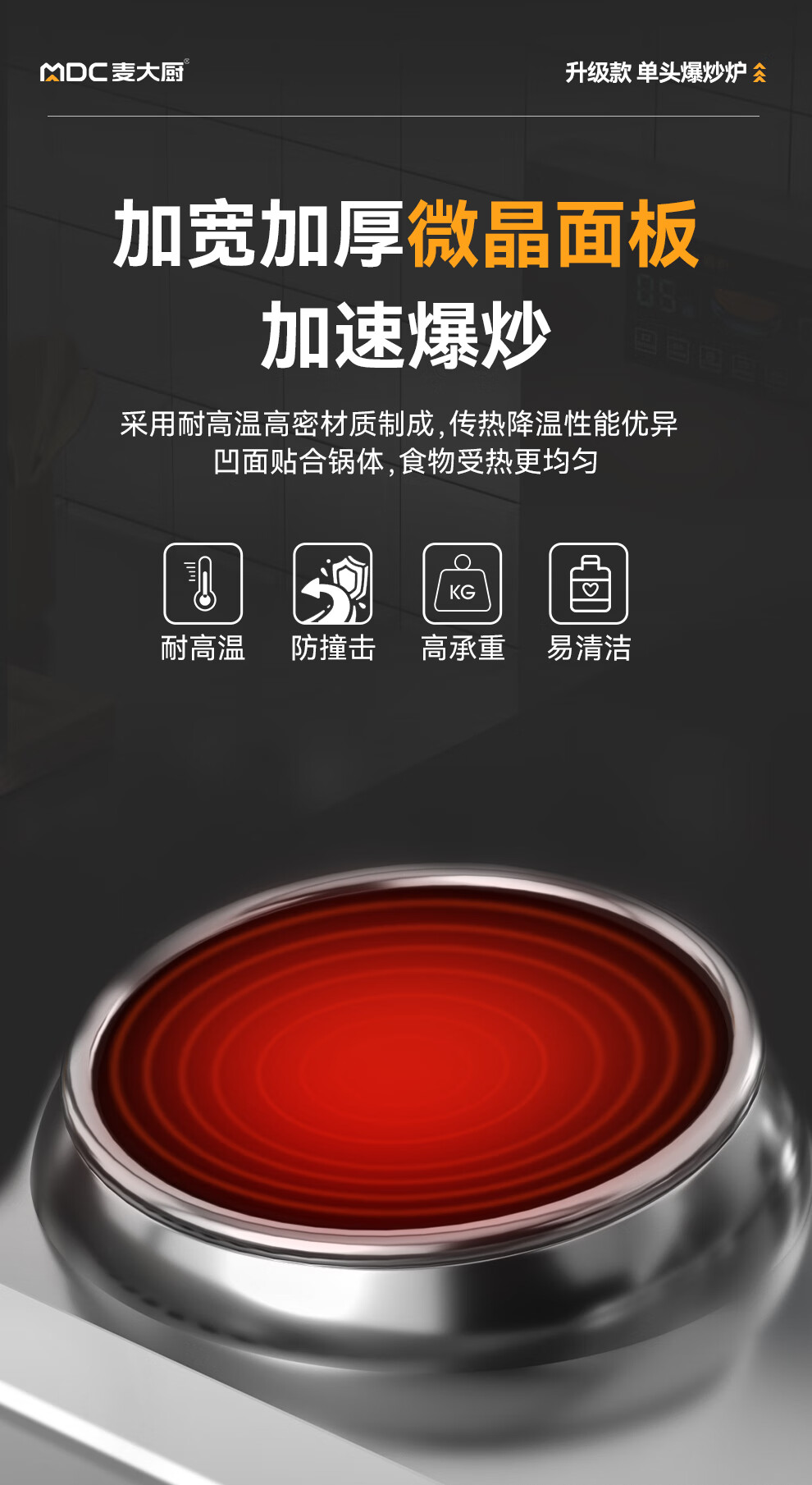 首頁 > 商廚產(chǎn)品 > 電磁灶 > 單頭無尾灶 >麥大廚食堂大火力電磁灶升級款單頭無尾小炒爐商用12kw