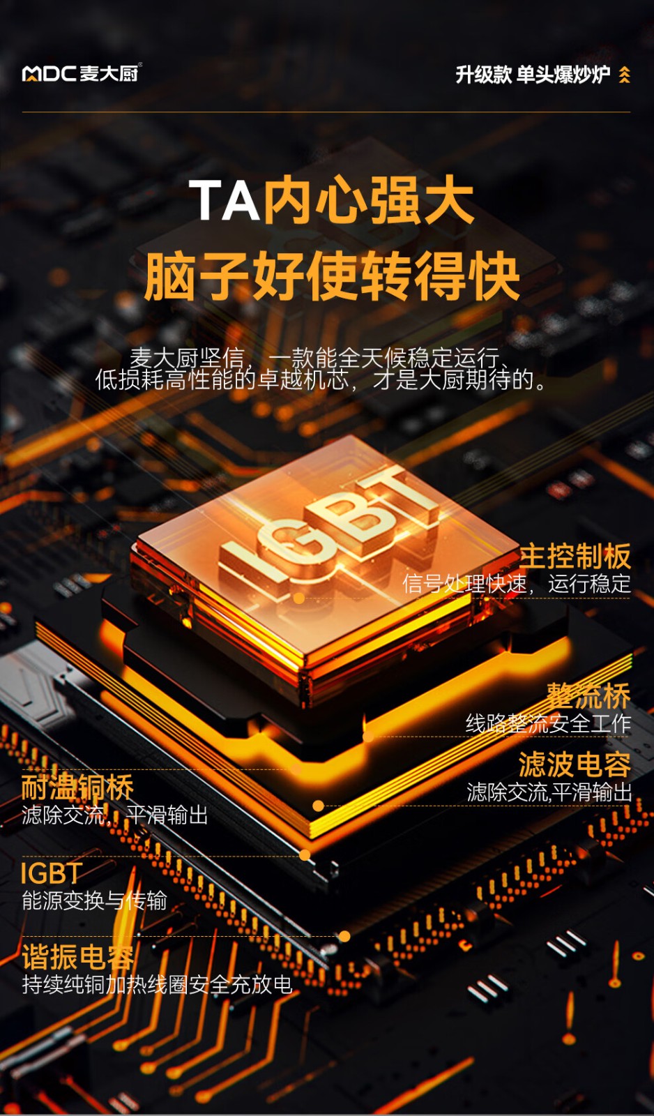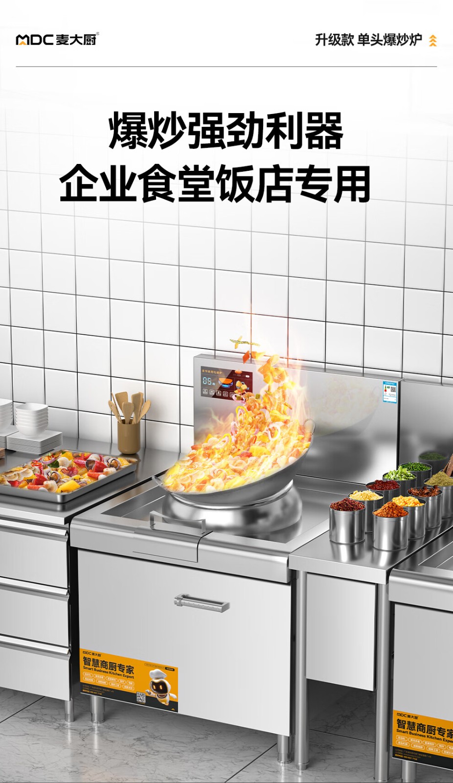麥大廚食堂大火力電磁灶升級款單頭無尾小炒爐商用15kw