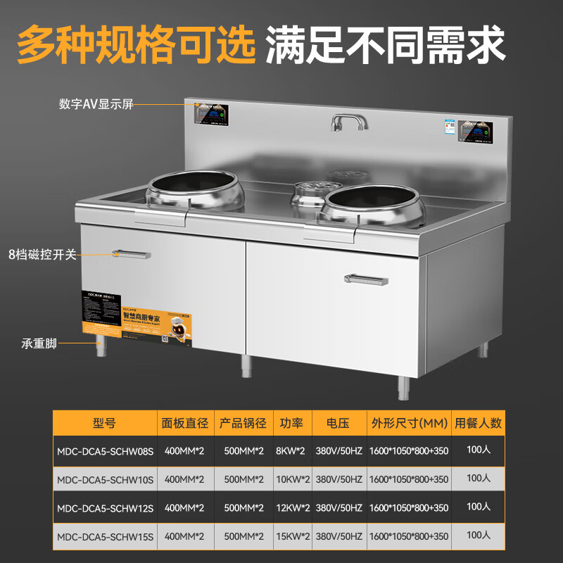 首頁 > 商廚產(chǎn)品 > 電磁灶 > 雙頭單尾灶 >麥大廚升級款雙頭單尾小炒爐商用8KW