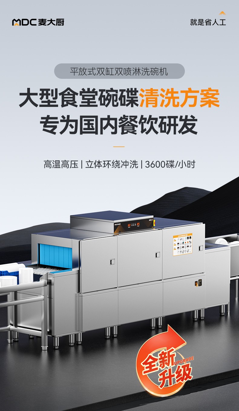 麥大廚旗艦款3.2m平放式雙缸雙噴淋長龍式洗碗機