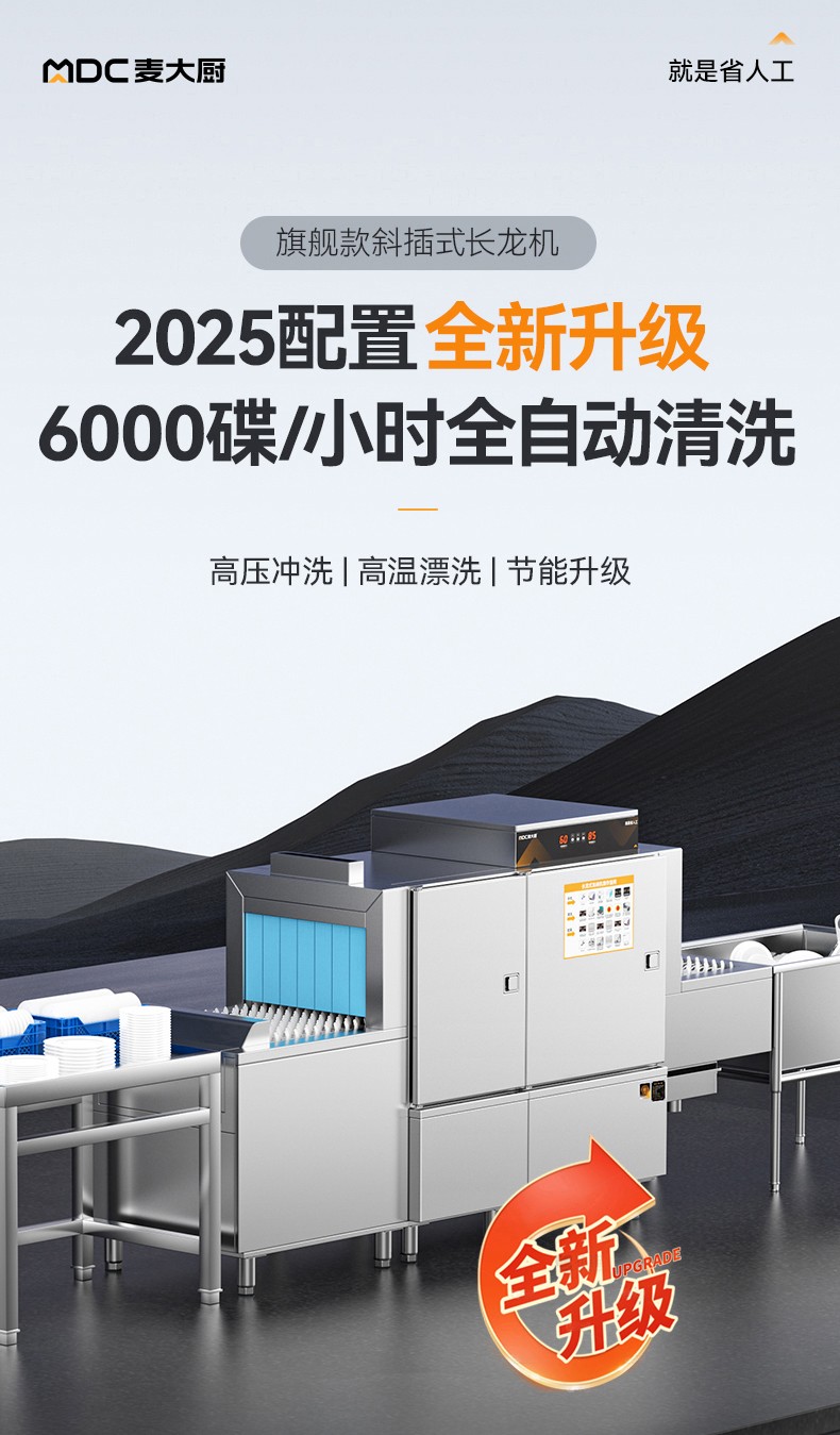 麥大廚旗艦款2.95m斜插式單缸單噴淋長(zhǎng)龍式洗碗機(jī)