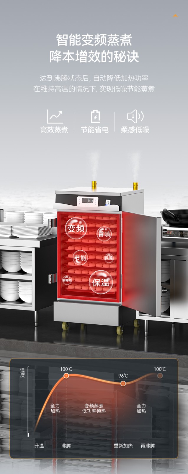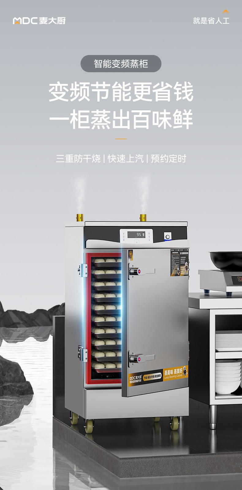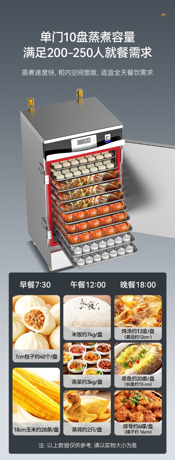 麥大廚商用蒸飯柜10盤變頻款智能電熱蒸箱蒸飯車全自動蒸柜