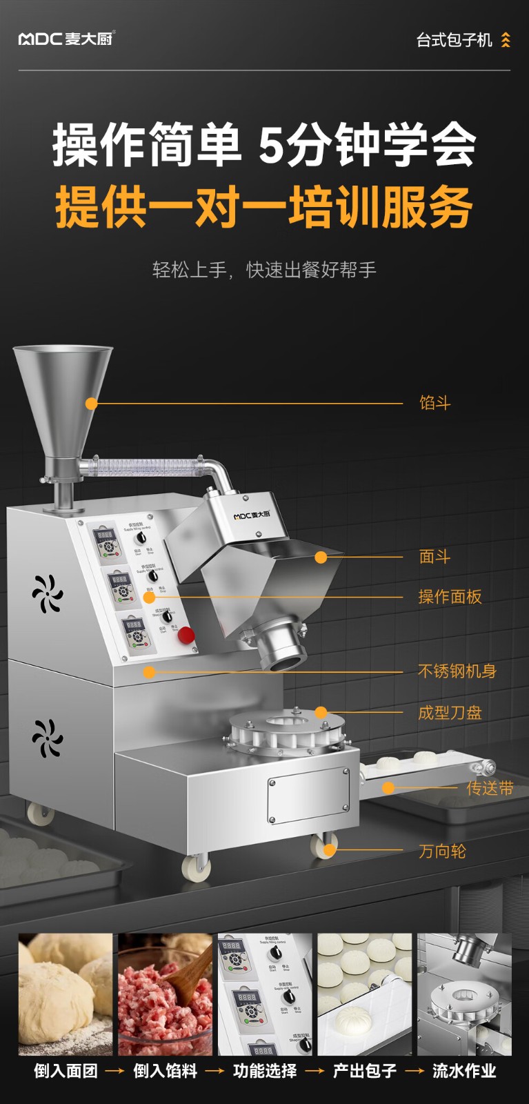 麥大廚包子機(jī)商用學(xué)校單位食堂小型自動(dòng)成型臺(tái)式單斗包子機(jī)0.8KW