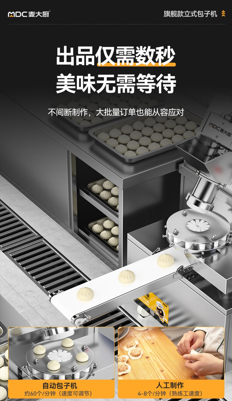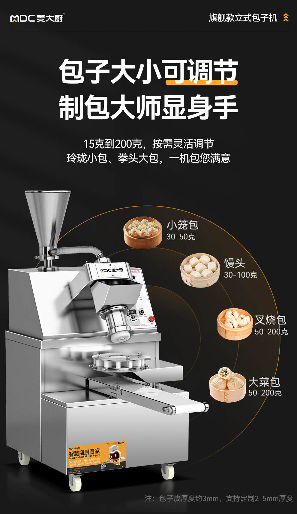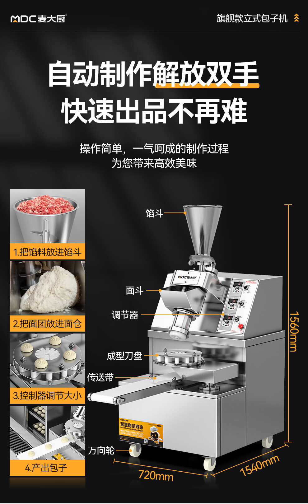 麥大廚包子機商用學(xué)校單位食堂全自動成型立式單斗包子機2.4KW