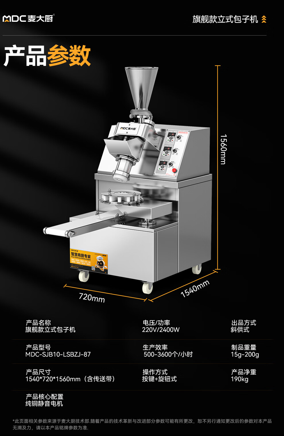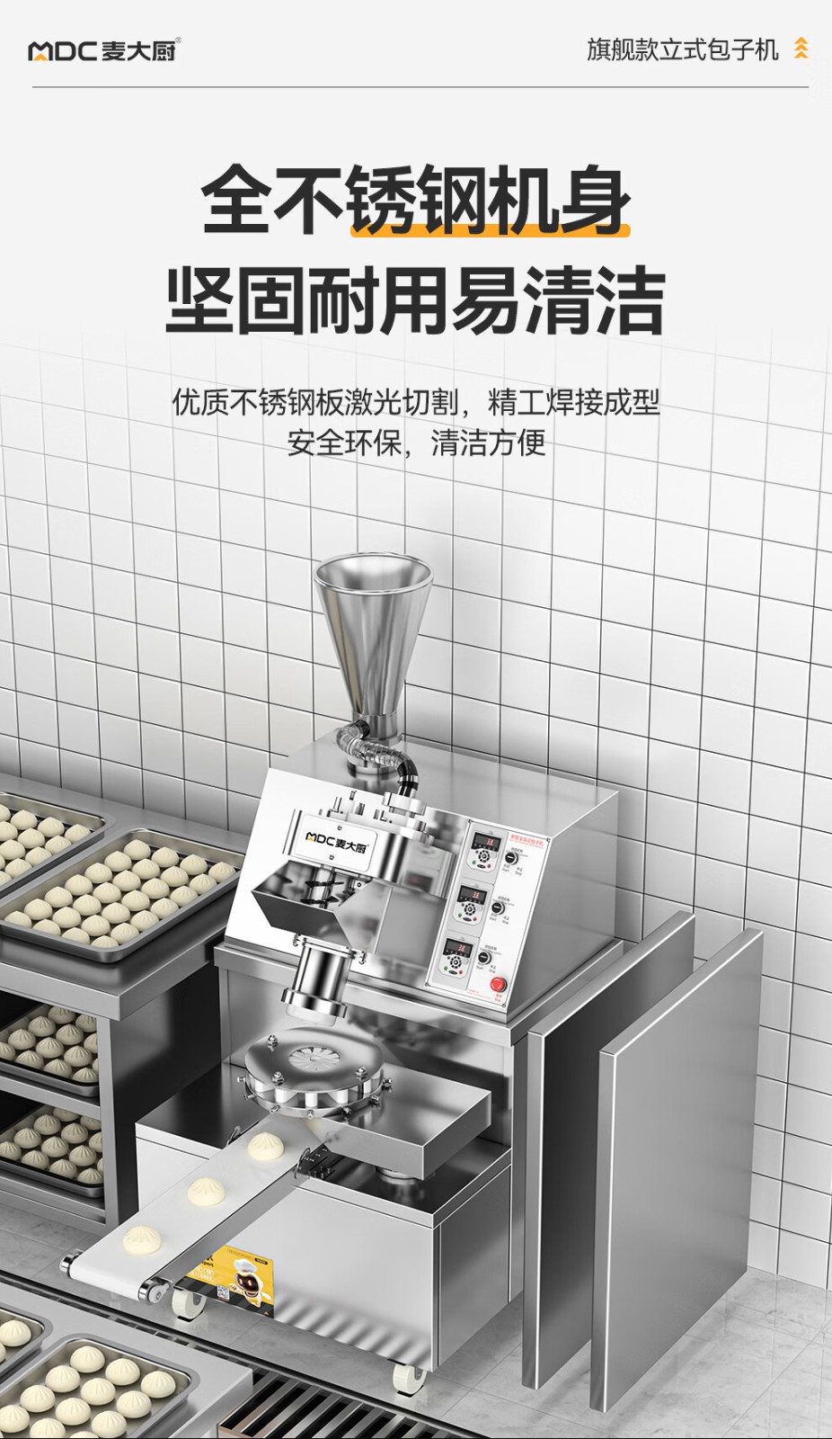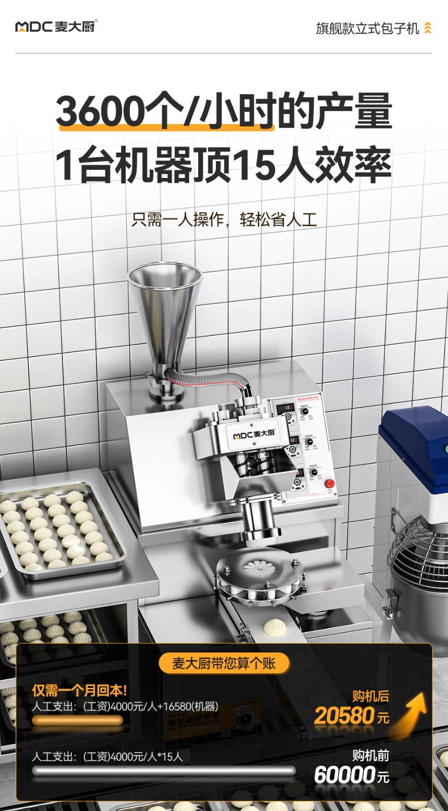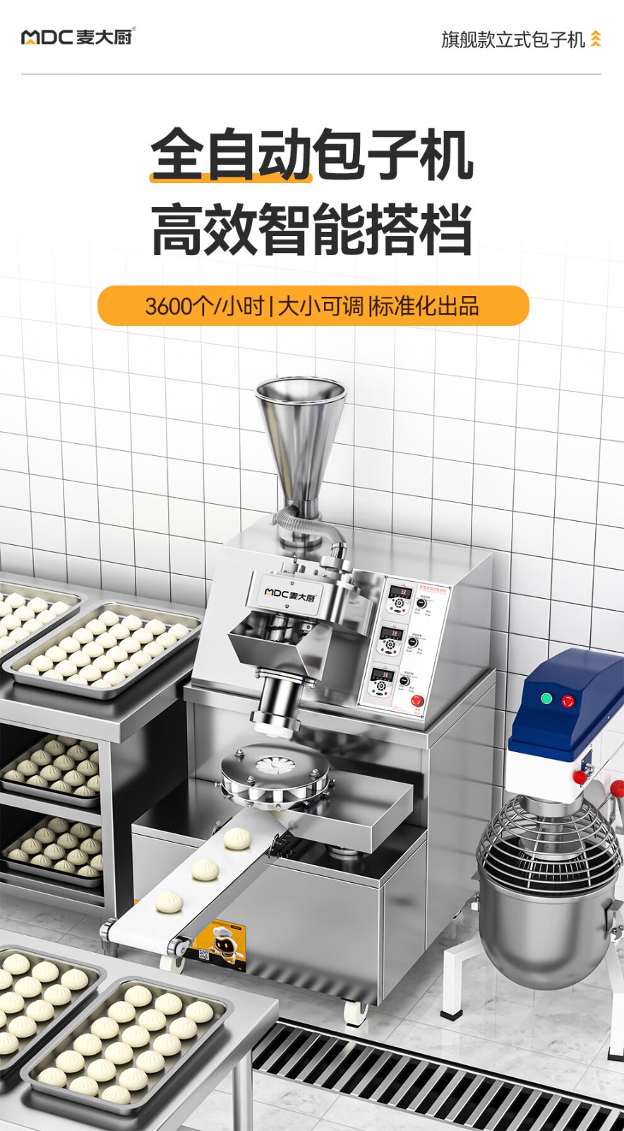 麥大廚包子機商用學(xué)校單位食堂全自動成型立式單斗包子機2.4KW