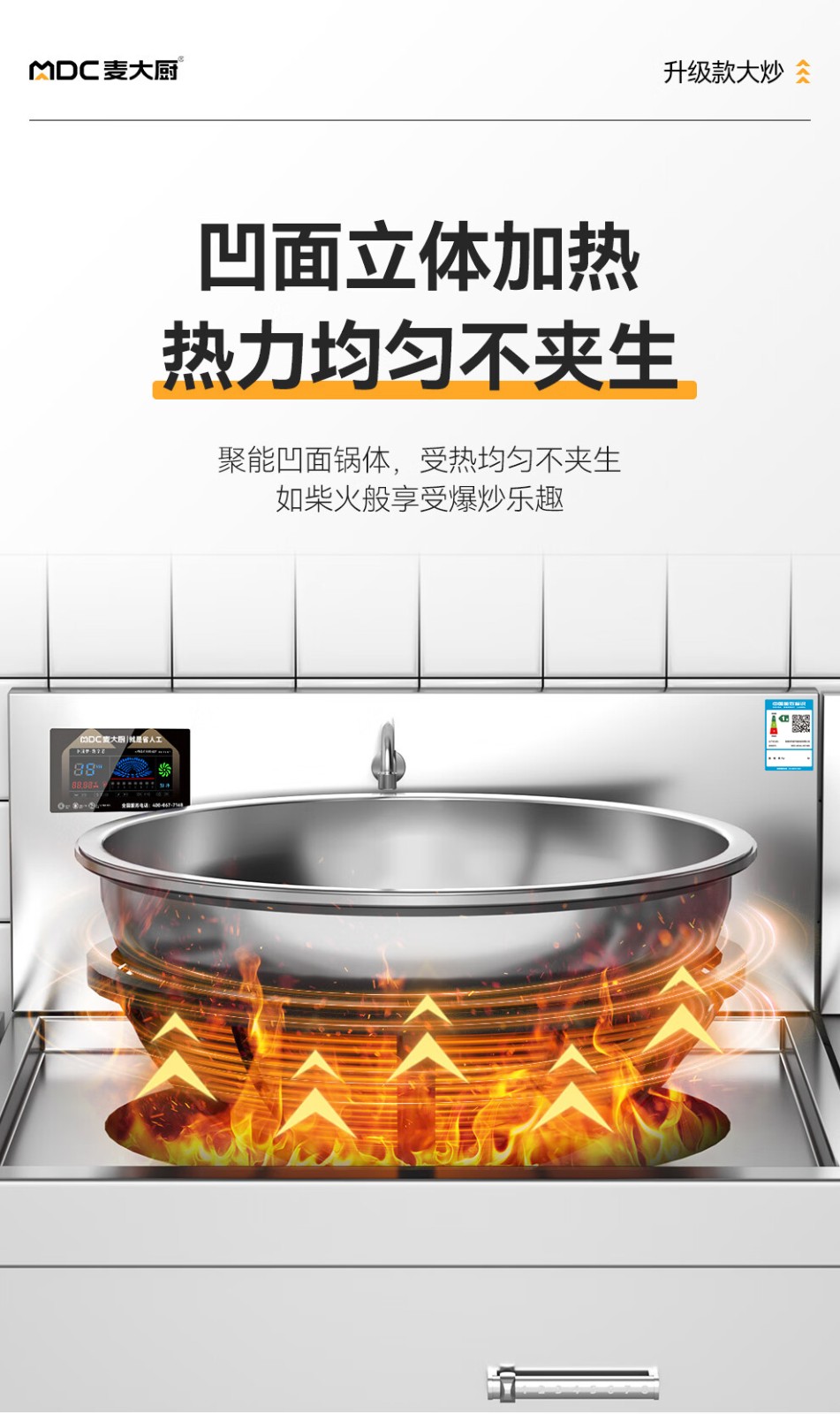 首頁 > 商廚產(chǎn)品 > 電磁灶 > 單頭大鍋灶 >麥大廚工廠食堂大炒鍋電磁爐升級款15KW單頭酒店餐廳商用大炒爐