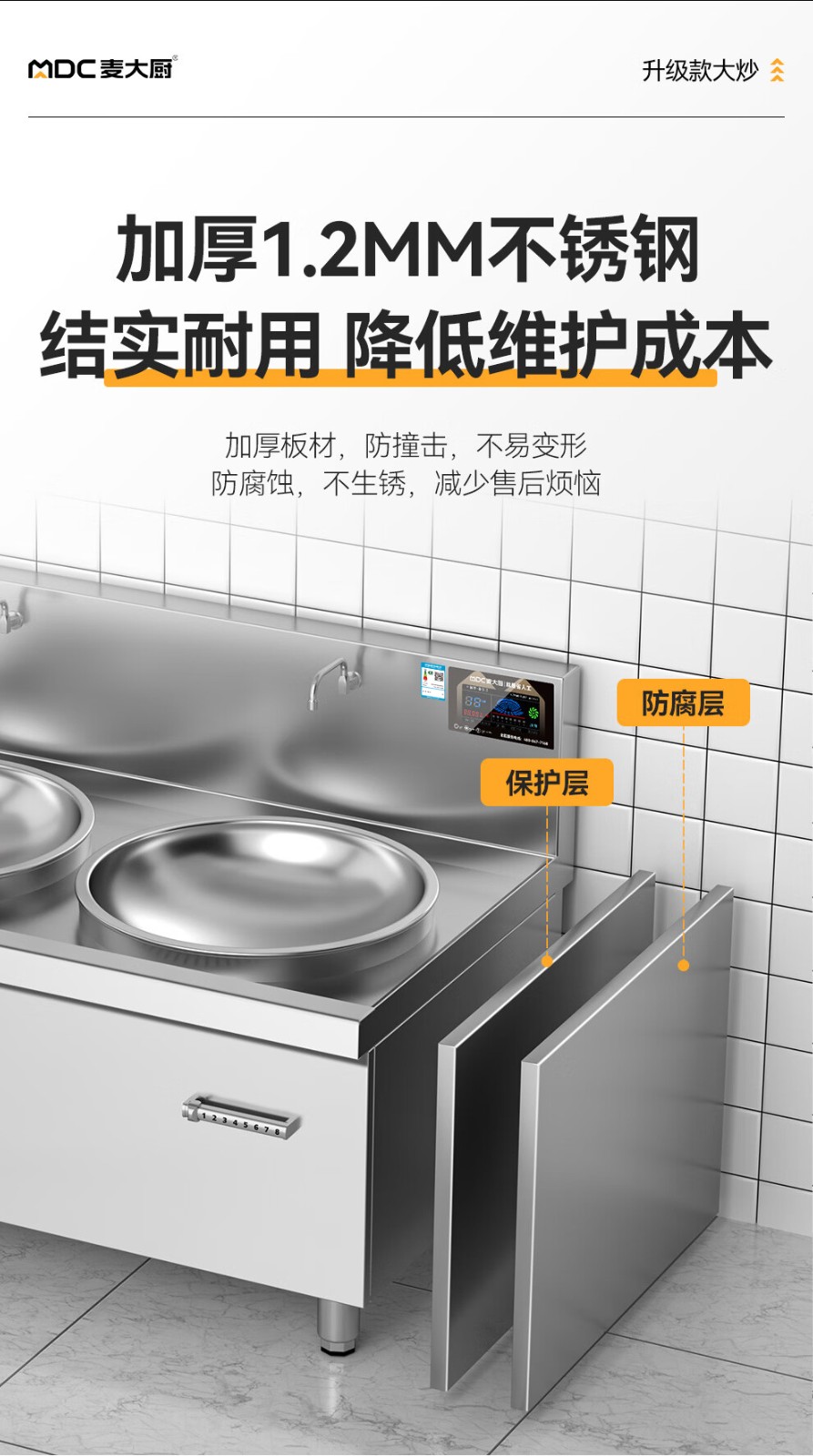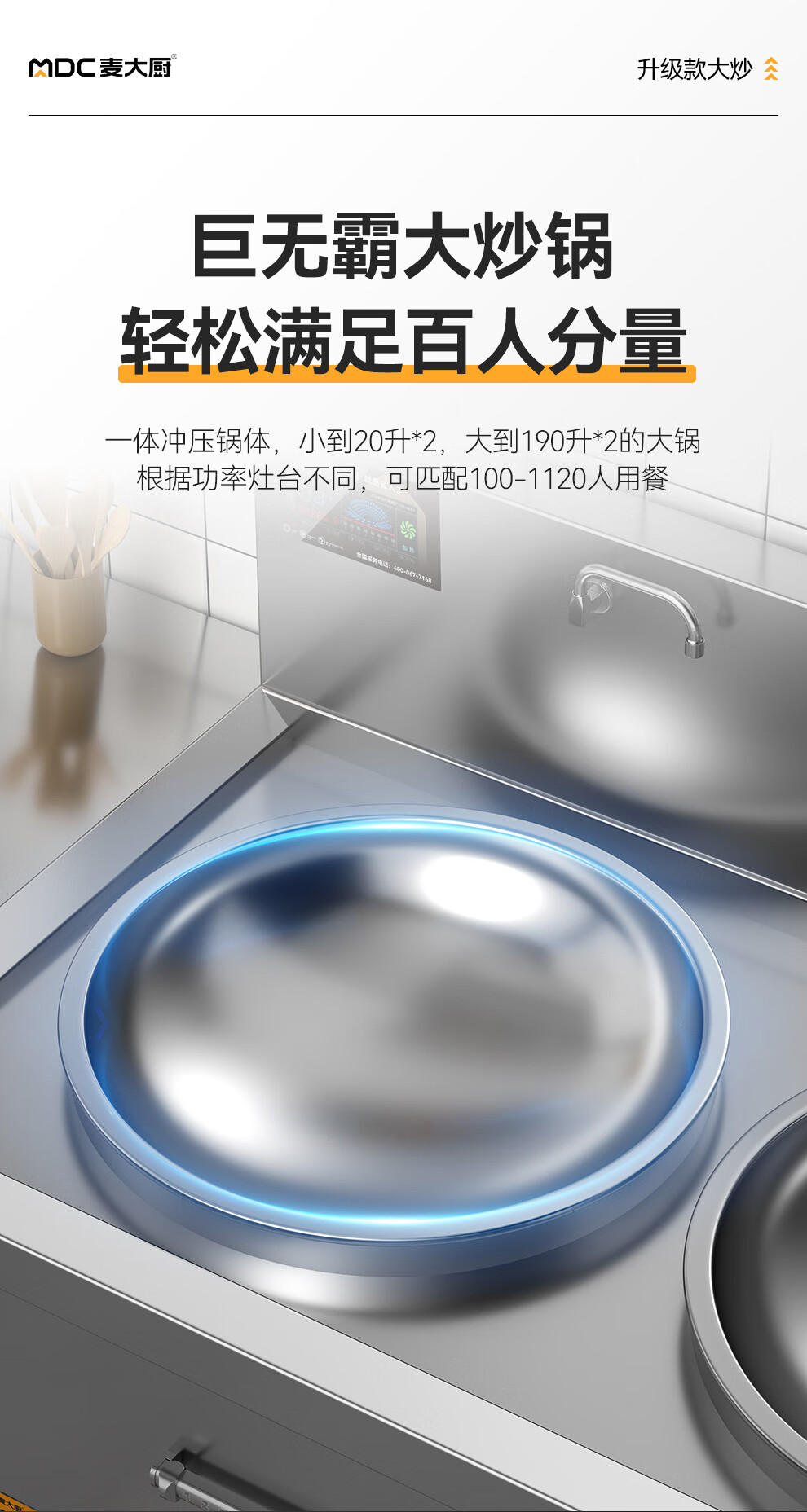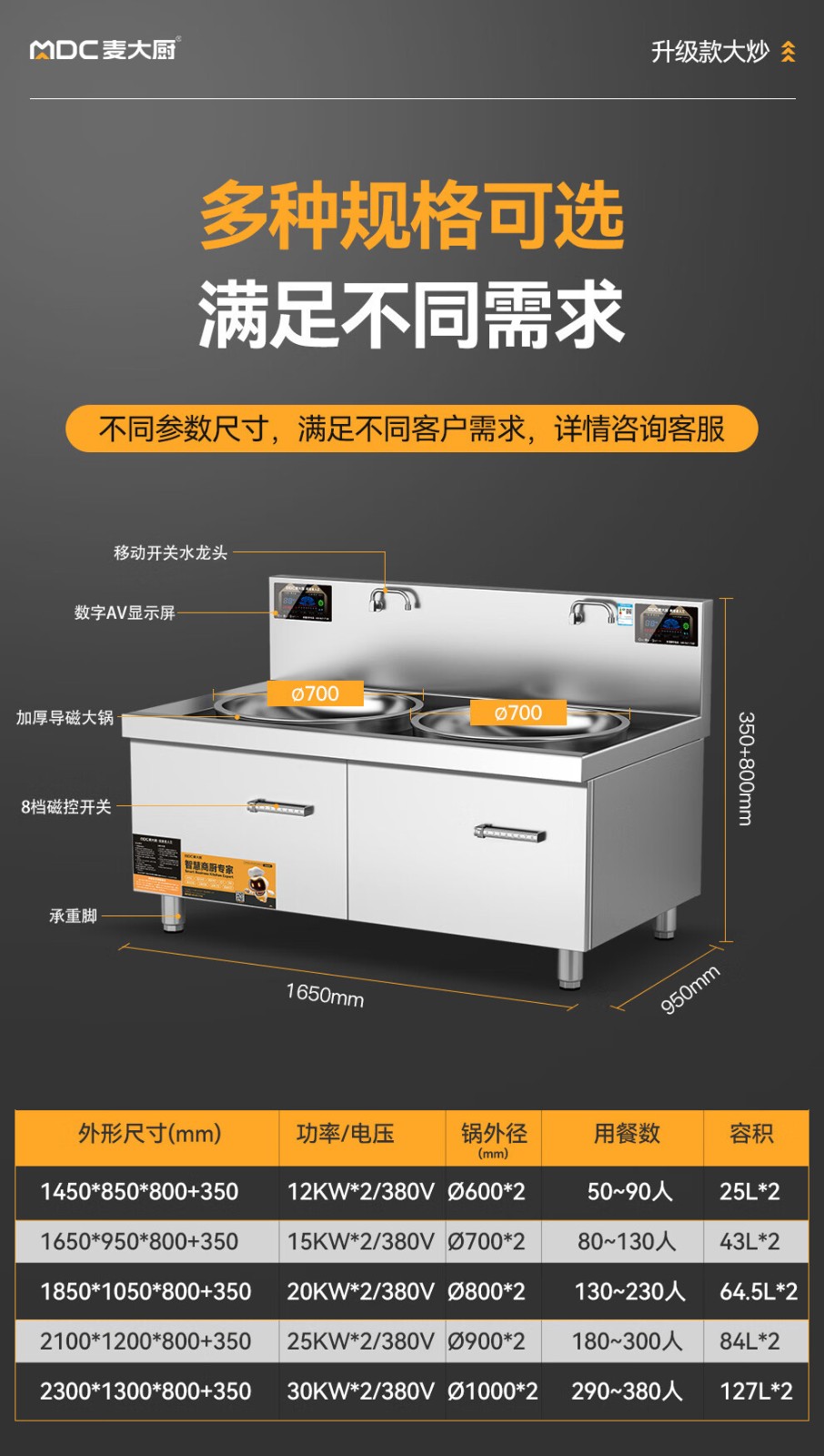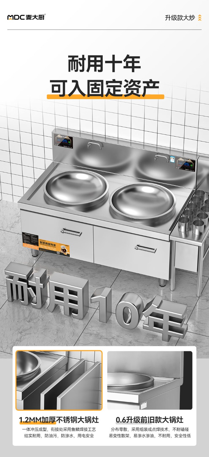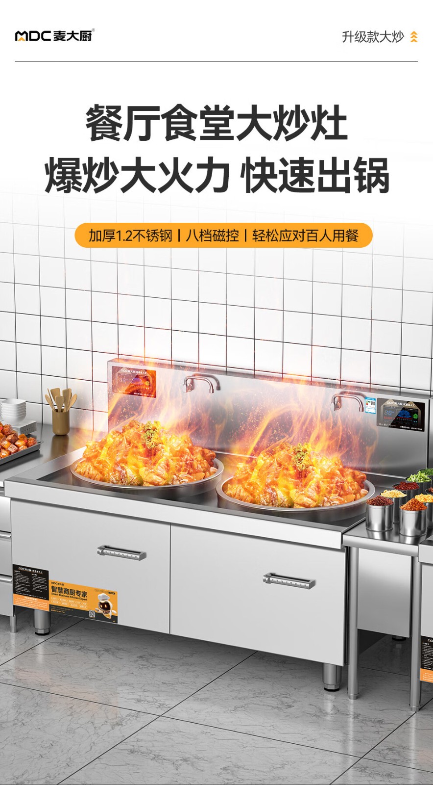 麥大廚食堂大炒鍋電灶臺升級款15KW雙頭工廠食堂大鍋灶