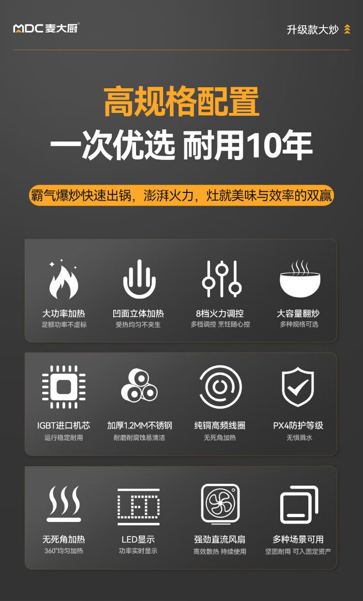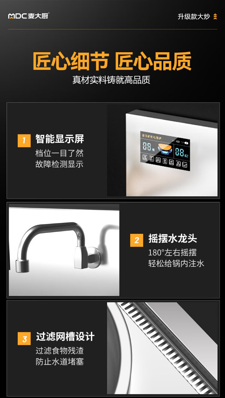 麥大廚百人大鍋灶電灶臺升級款20KW雙頭大型飯店大炒鍋