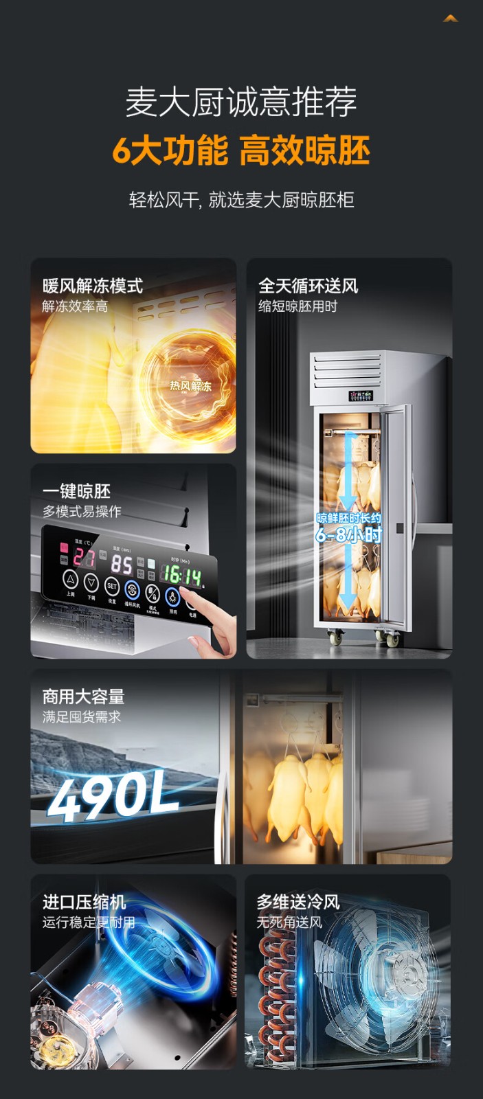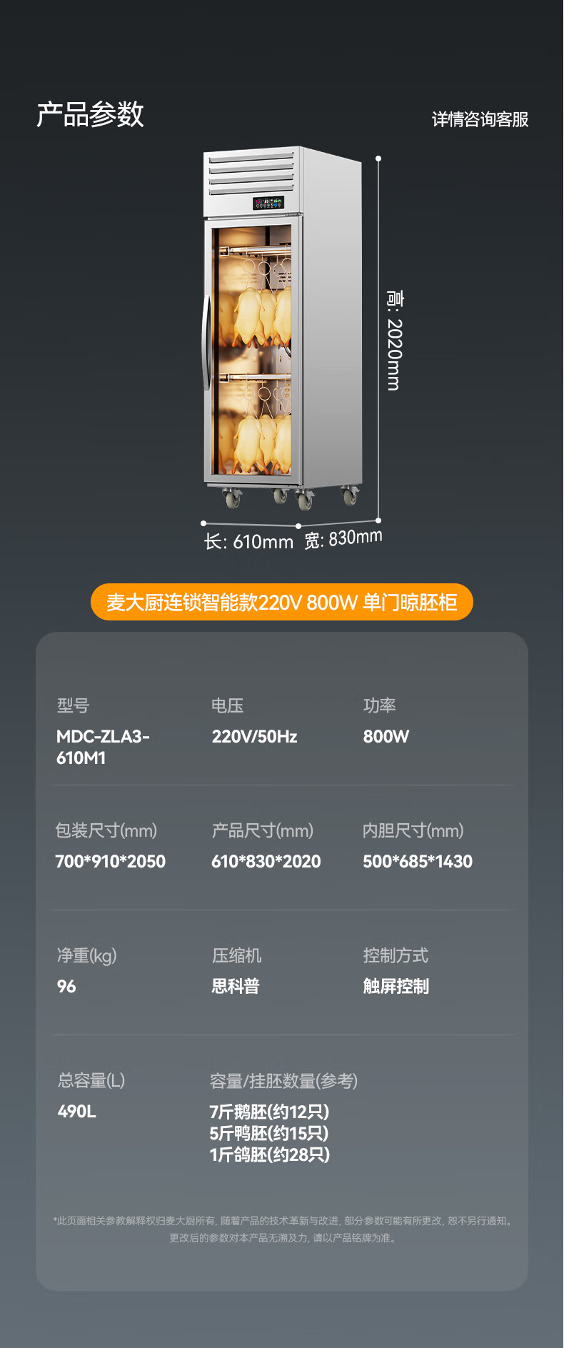 麥大廚商用晾胚柜連鎖智能款800W單門烤鴨風(fēng)干柜