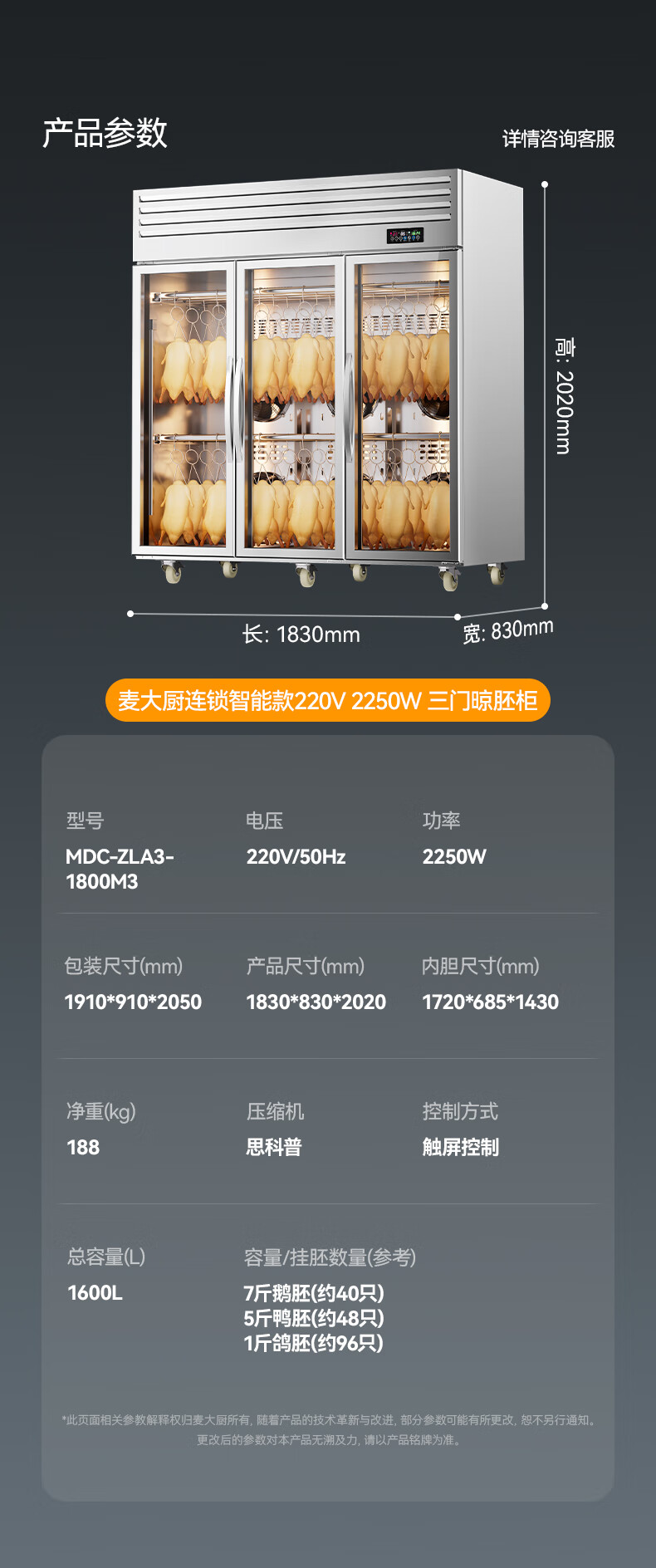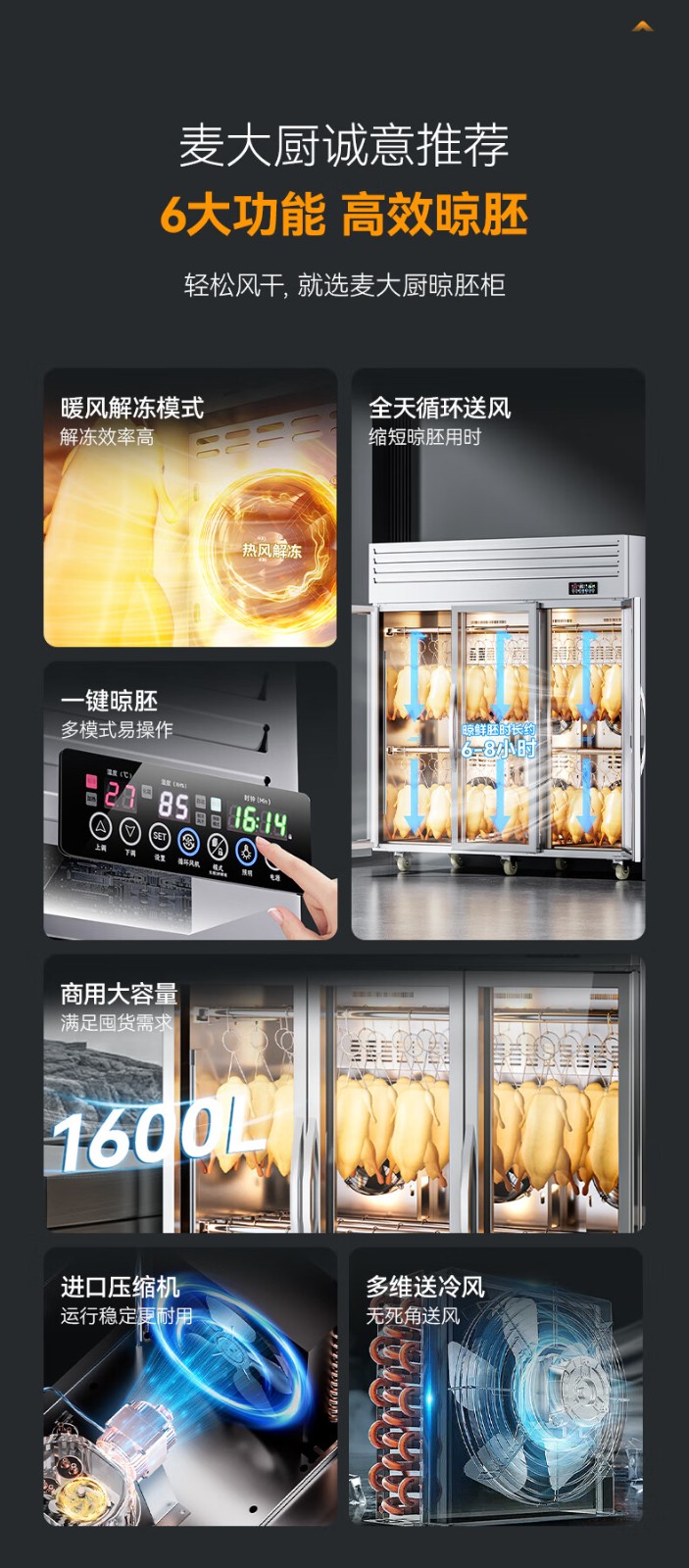 麥大廚商用晾胚柜連鎖智能款2250W三門烤鴨風干柜