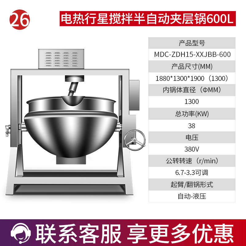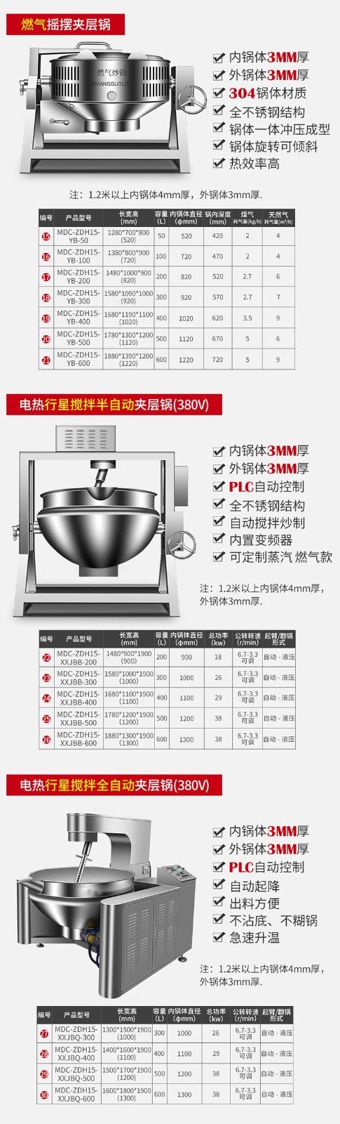 MDC電熱行星攪拌半自動(dòng)商用夾層鍋200至500L