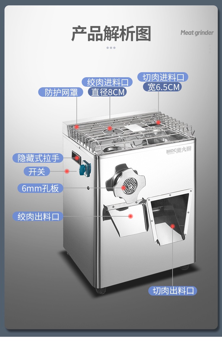 首頁 > 商廚產(chǎn)品 > 食品機(jī) > 切肉機(jī) >麥大廚220V立式切肉機(jī)0.75KW