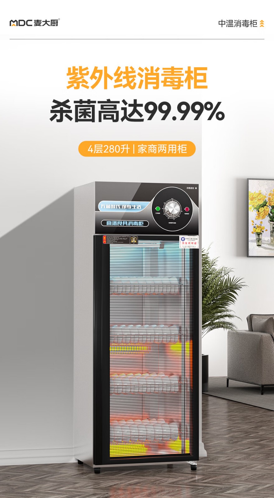 麥大廚高端款220V單門280L中溫食具消毒柜610W