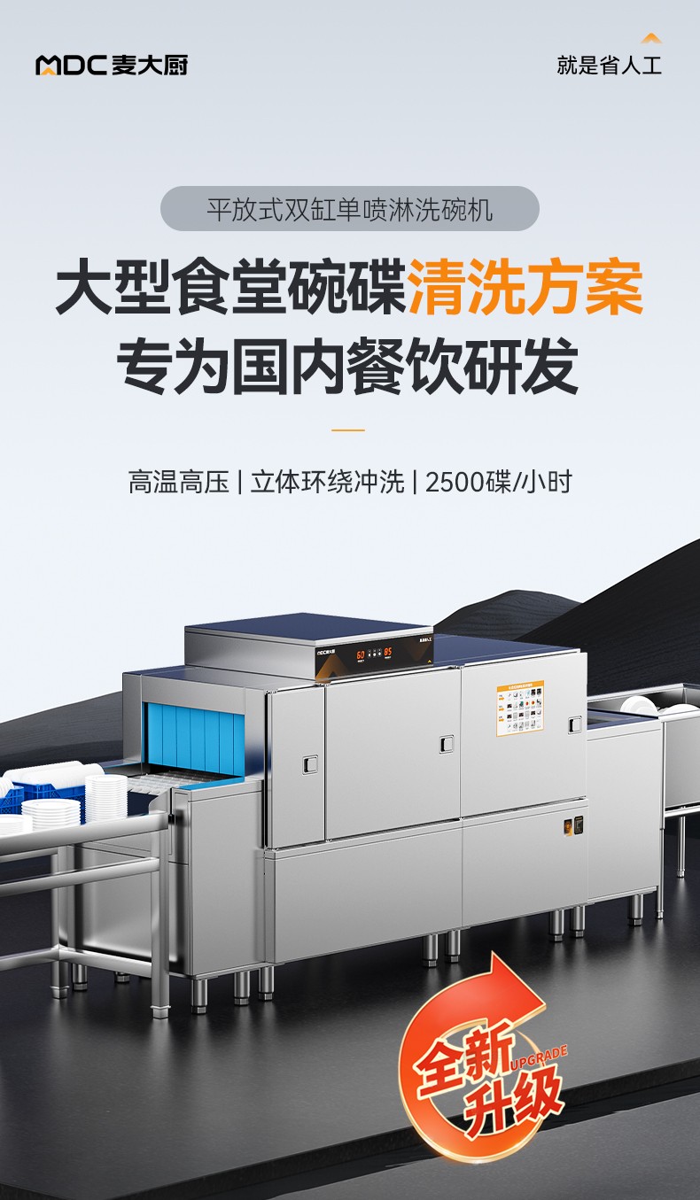 麥大廚旗艦款2.95m平放式雙缸單噴淋長龍式洗碗機