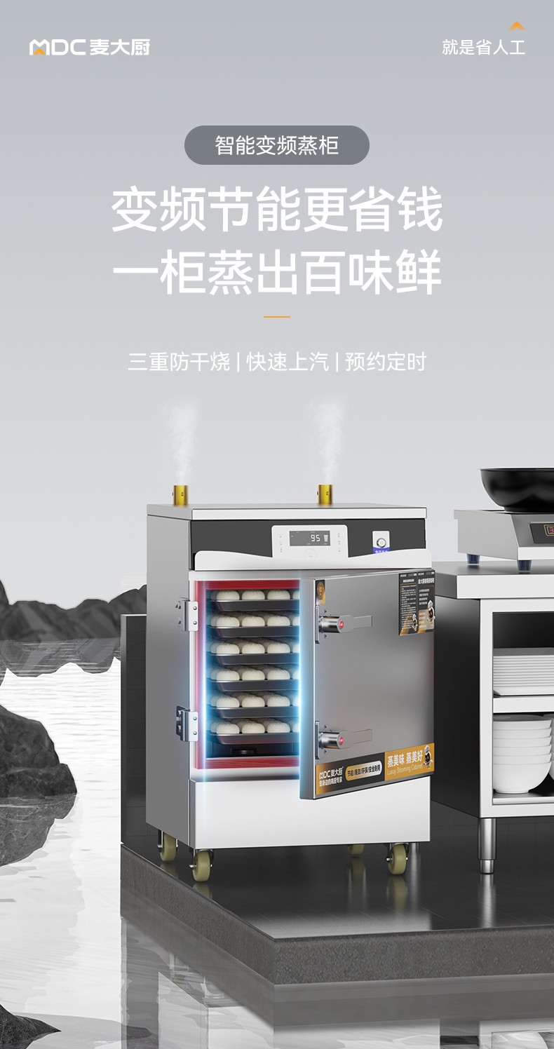 麥大廚商用蒸柜6盤變頻款單門電熱蒸箱蒸飯車全自動蒸飯柜