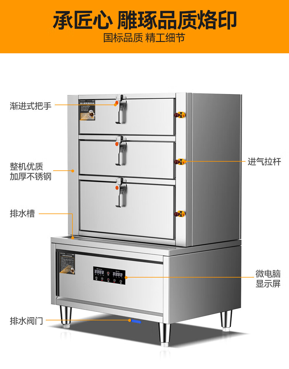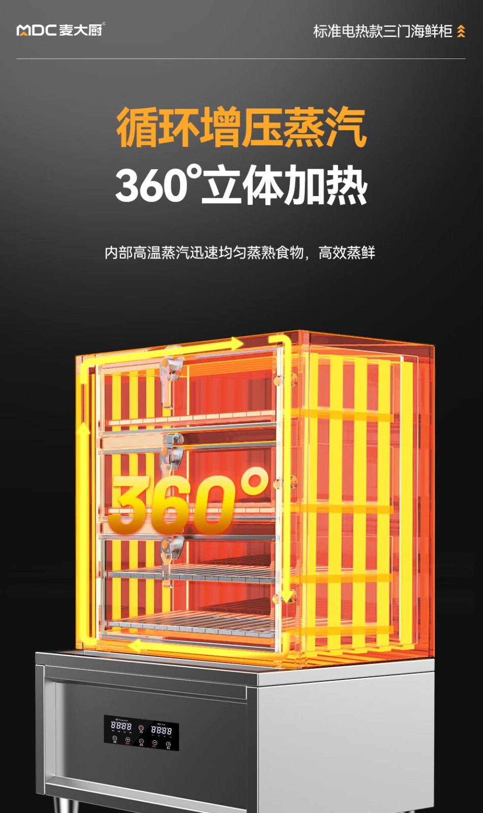 麥大廚商用蒸柜1000mm標準電熱款三門海鮮蒸柜